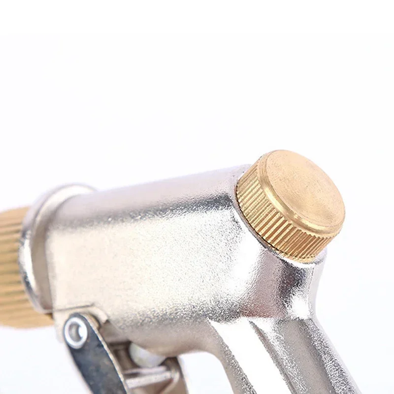 Experience the efficiency and durability of this high-pressure water spray, expertly crafted from zinc alloy and copper. Its sleek silver finish with optional painted or plated surfaces provides a modern, industrial look that fits well in any garden or cleaning setup. Designed for comfort and precision, the ergonomic handle and adjustable nozzle ensure you can easily switch spray patterns to fit your needs. Whether you’re watering your garden, washing your car or cleaning walls, this spray delivers a powerful, adjustable jet within a 15-meter range. Its compact size (17 x 17 x 2 cm) makes it easy to handle and store, turning everyday tasks into effortless chores with just a few twists.