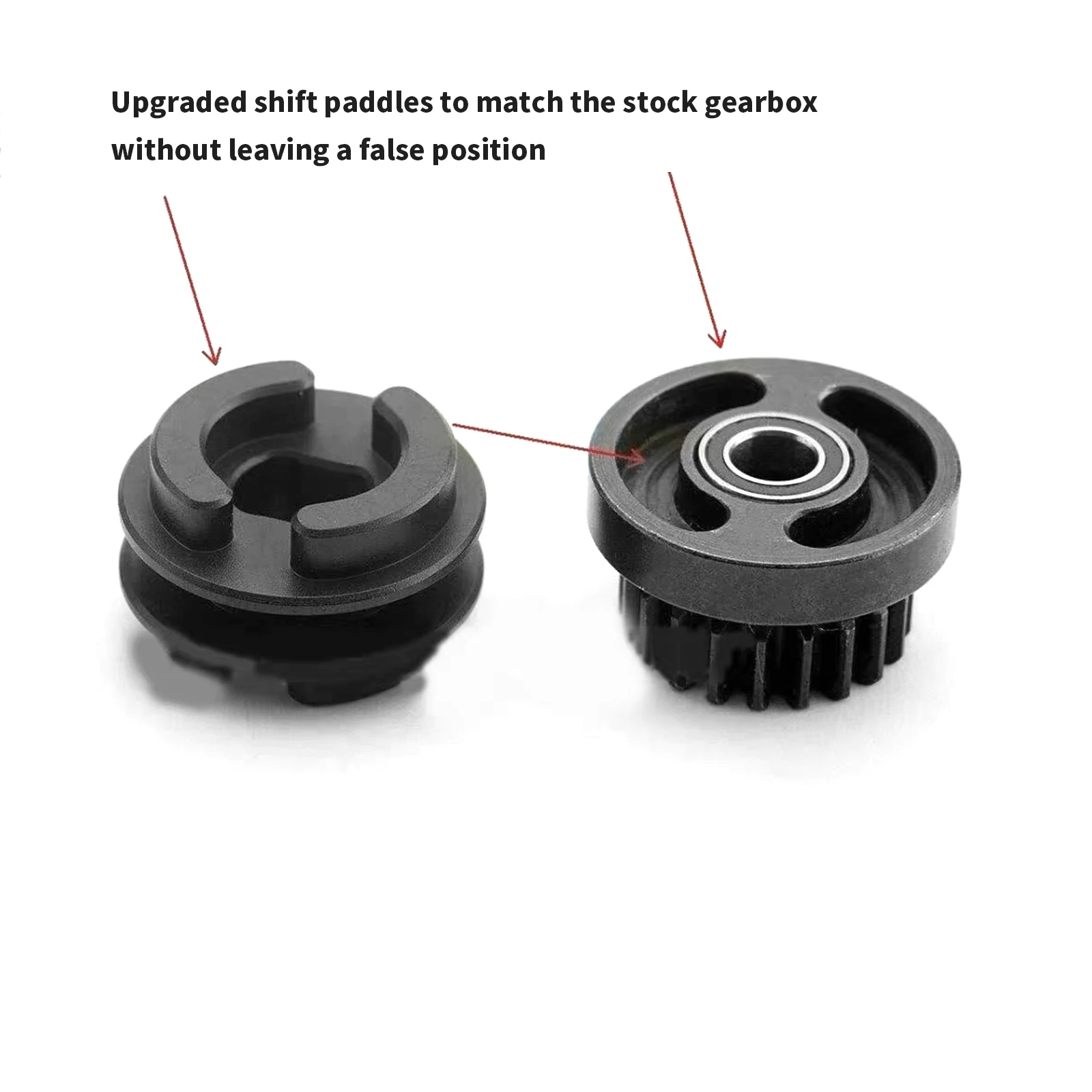 This set of two durable metal conversion shafts or paddles replaces original gear parts for YiKong YK4082, YK4083, YK4102, and YK4103 gearboxes. Each paddle weighs approximately 38 grams and features high-quality construction with a sleek black matte finish or a polished silver surface, offering both functional durability and stylish contrast. Designed for easy installation and replacement, these parts ensure smooth gear operation and reliable performance. Ideal for adult enthusiasts and DIY enthusiasts aged 14 and above, this set provides a precise fit for compatible models, enhancing the longevity and efficiency of your gear system.