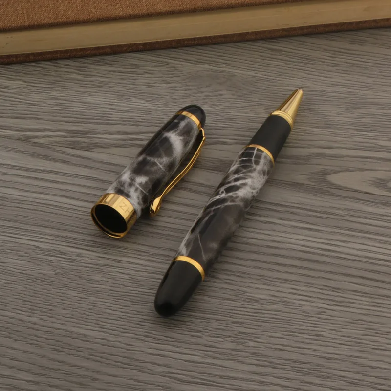 - Constructed from durable metal, this pen offers a premium feel, sturdy build, and an elegant marbled black and gray finish that exudes sophistication and style.