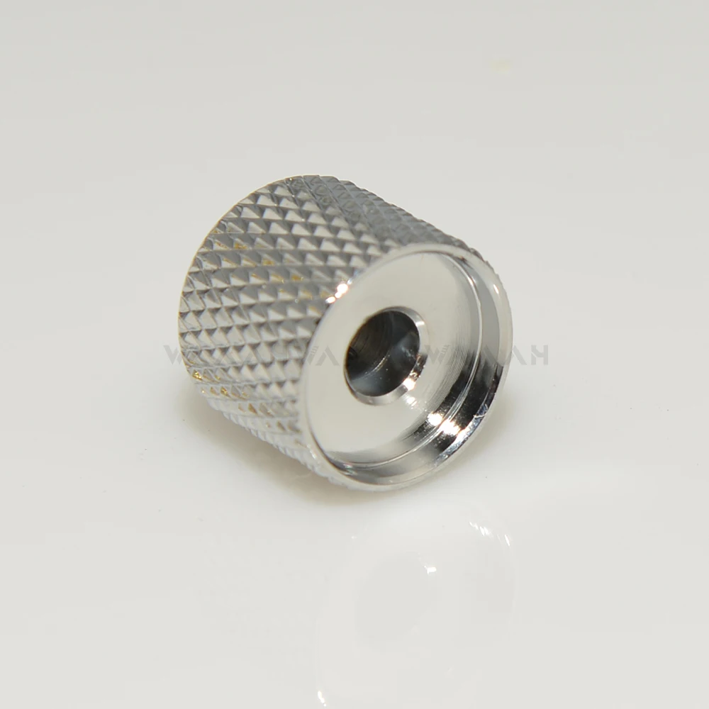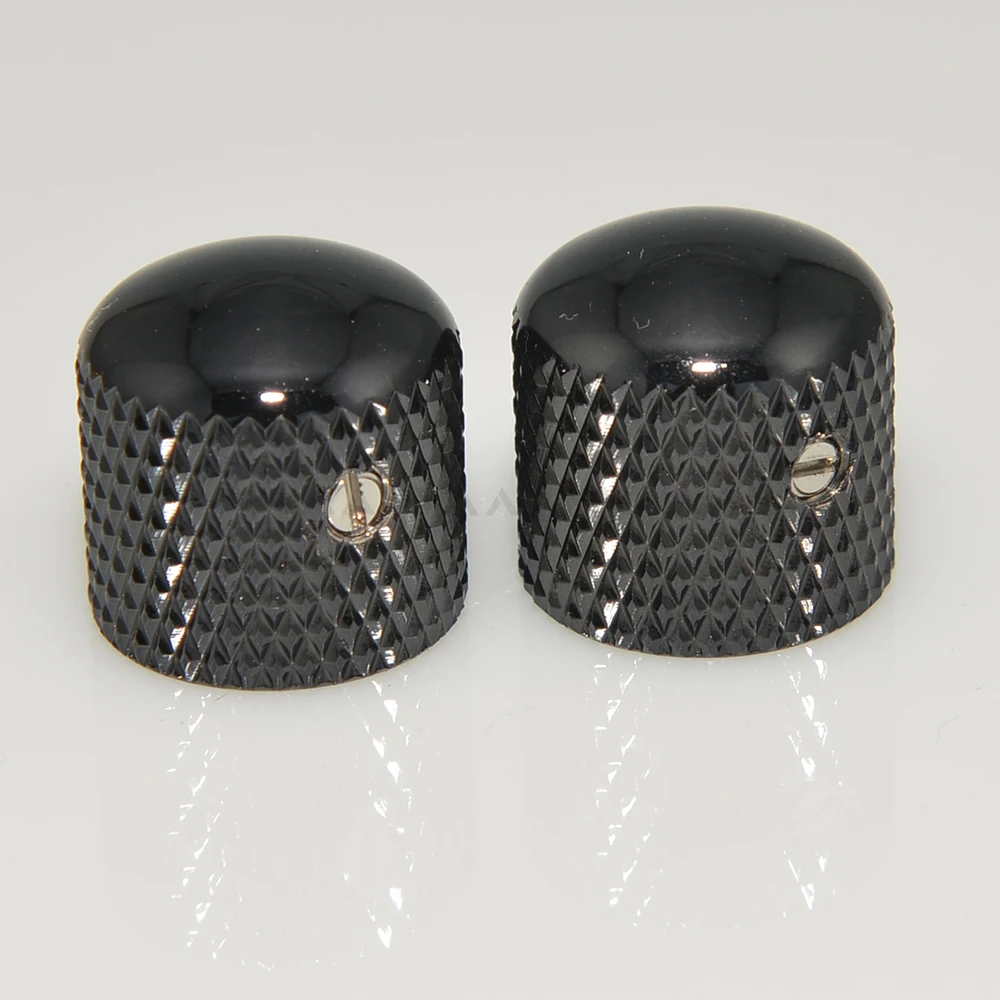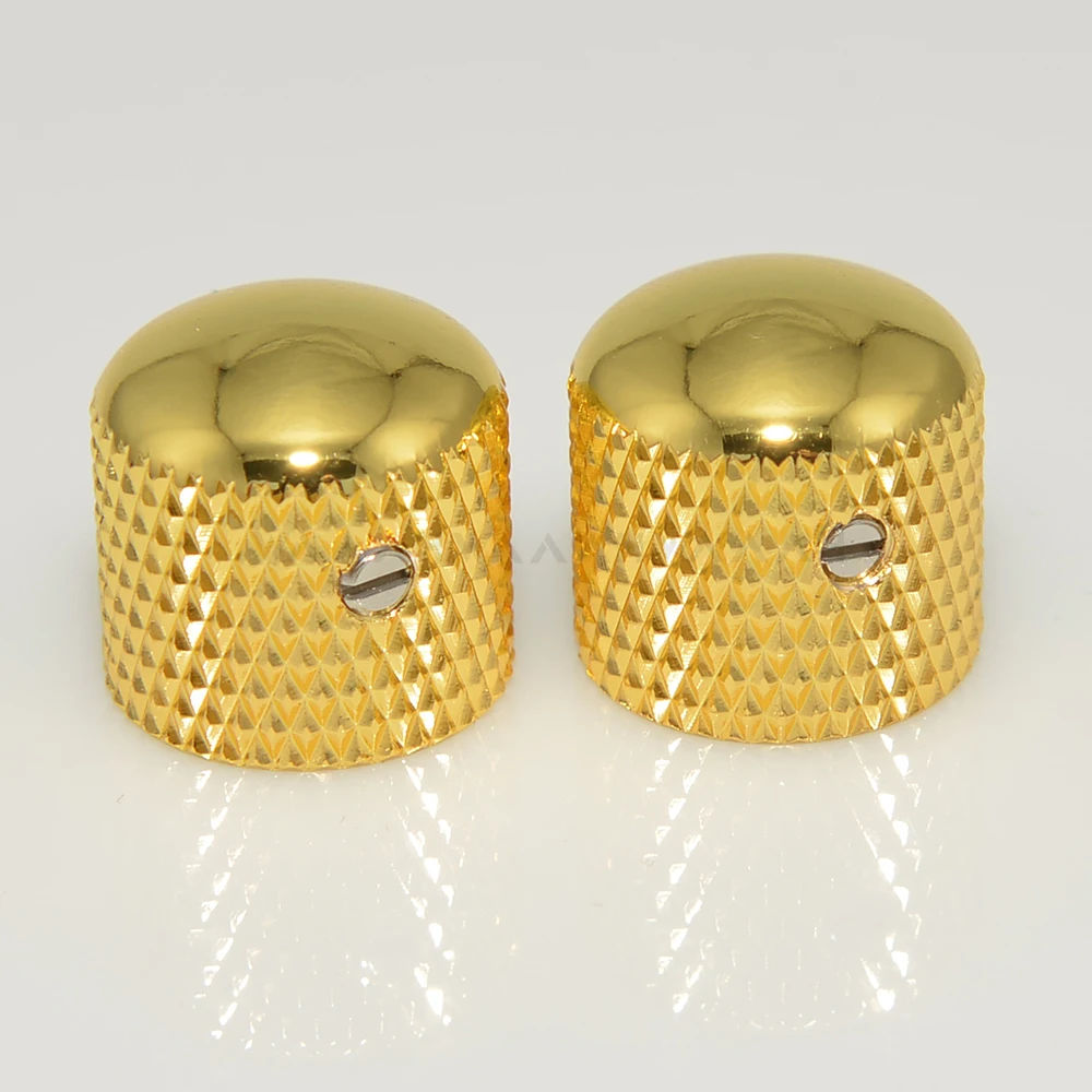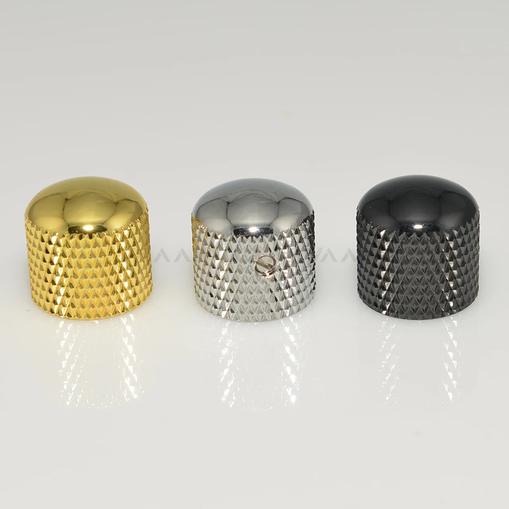Transform your guitar with this premium set of CNC-machined brass control knobs, designed to bring a sleek, polished look to your instrument. Crafted with high-quality metal, these dome-shaped knobs feature a textured, diamond-patterned surface, providing excellent grip while elevating your guitar’s aesthetic. Available in eye-catching black, gold, and chrome finishes, each knob measures 19mm in diameter and 18.5mm in height, perfectly fitting standard 6mm hollow shafts. Their durable construction ensures they stand up to rigorous playing, while their smooth, rounded edges add a modern, refined touch. Easy to install, these knobs require no batteries or plugs, making for a hassle-free upgrade that combines functionality with style.