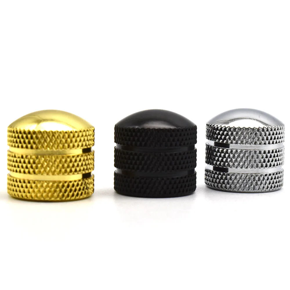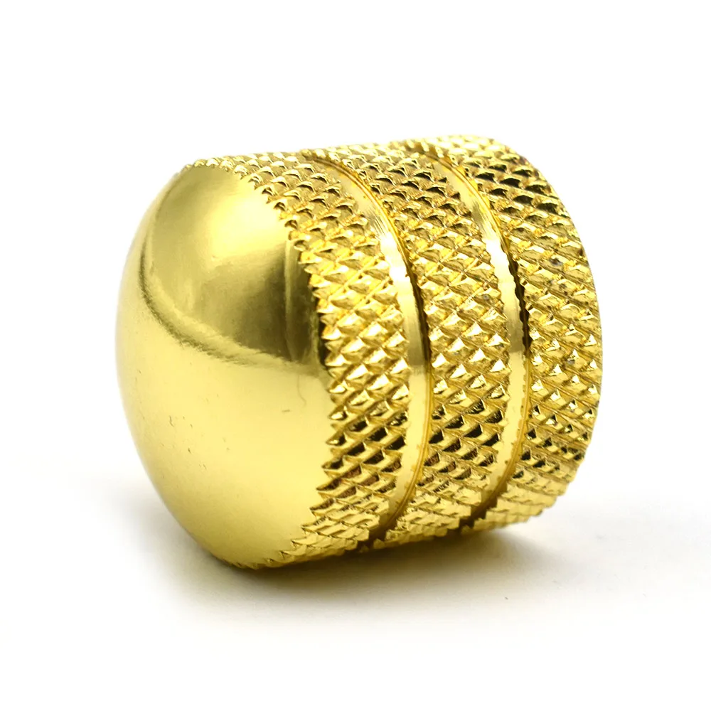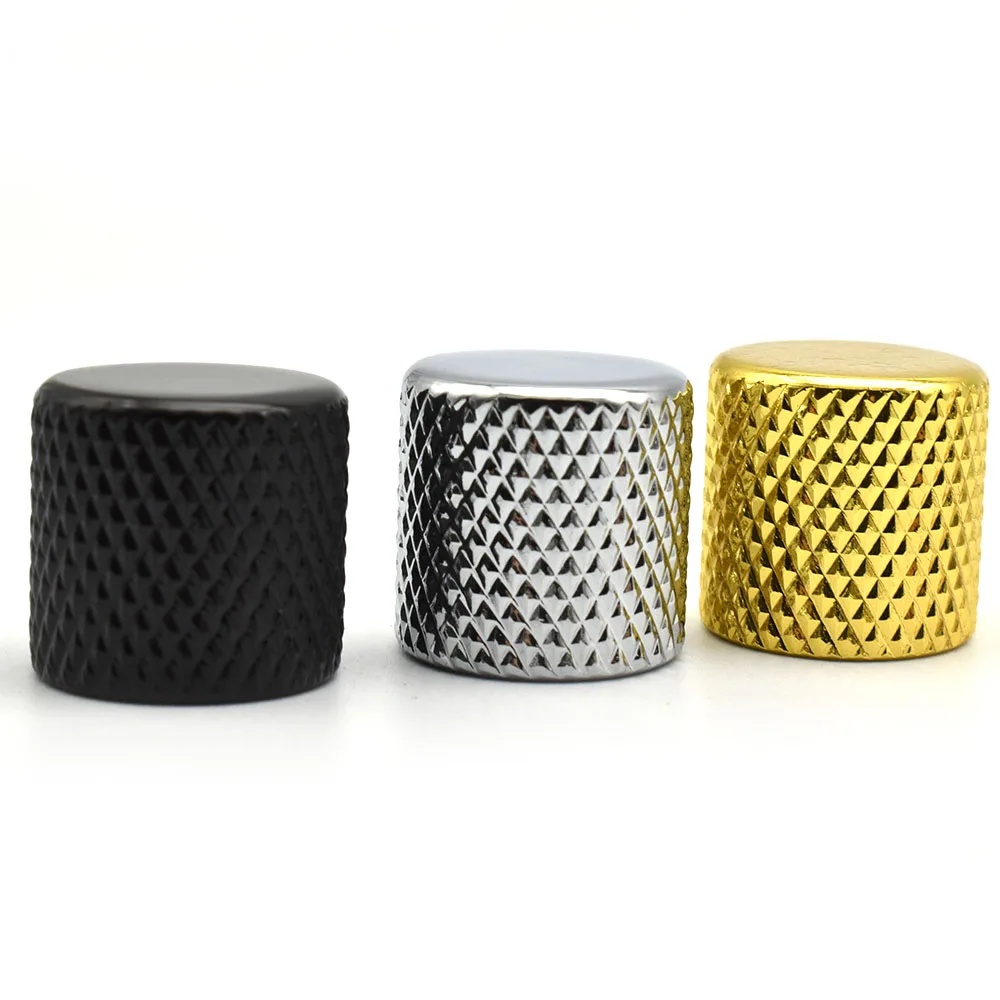 Enhance your electric guitar or bass with this stylish collection of 24 metal control knobs, perfect for updating your instrument’s look and feel. Crafted from durable metal, these knobs feature a sleek, modern design available in black, gold, and chrome finishes. Designed for 6mm potentiometer shafts, they fit a wide range of electric guitars, including LP and TL models. The set includes both large knobs with a smooth, rounded top and smaller stackable knobs with a dual-section design separated by a gold-colored band, offering versatile tonal and volume control options. Their textured diamond-pattern surface provides superior grip, ensuring precise control during performances. Whether you're customizing your instrument or replacing worn knobs, this set provides durability, functionality, and style in one package.