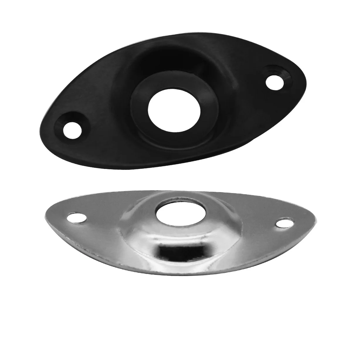 Imagine elevating your electric guitar's look and functionality with this high-quality metal jack plate. Designed to fit perfectly and provide reliable support for your output jack, it combines aesthetic appeal with enduring durability. Whether you prefer the shimmering chrome finish or the sleek matte black, this versatile accessory enhances your guitar’s appearance while ensuring optimal performance. Easy to install with precisely drilled screw holes spaced 37mm apart, it suits various guitar models requiring a 1/4″ (6.35mm) jack socket. With dimensions of approximately 48.3mm by 25.8mm and a central hole of 9mm diameter, this replacement part offers a seamless upgrade to your instrument, blending craftsmanship with style and convenience.