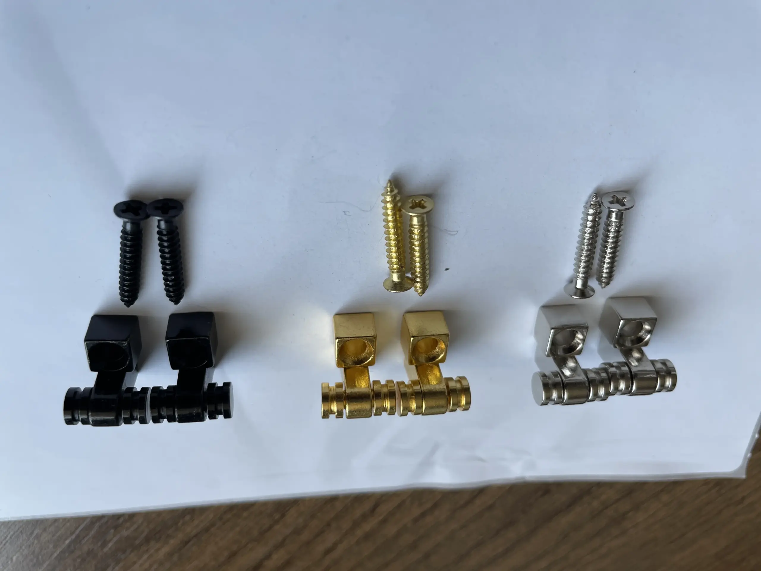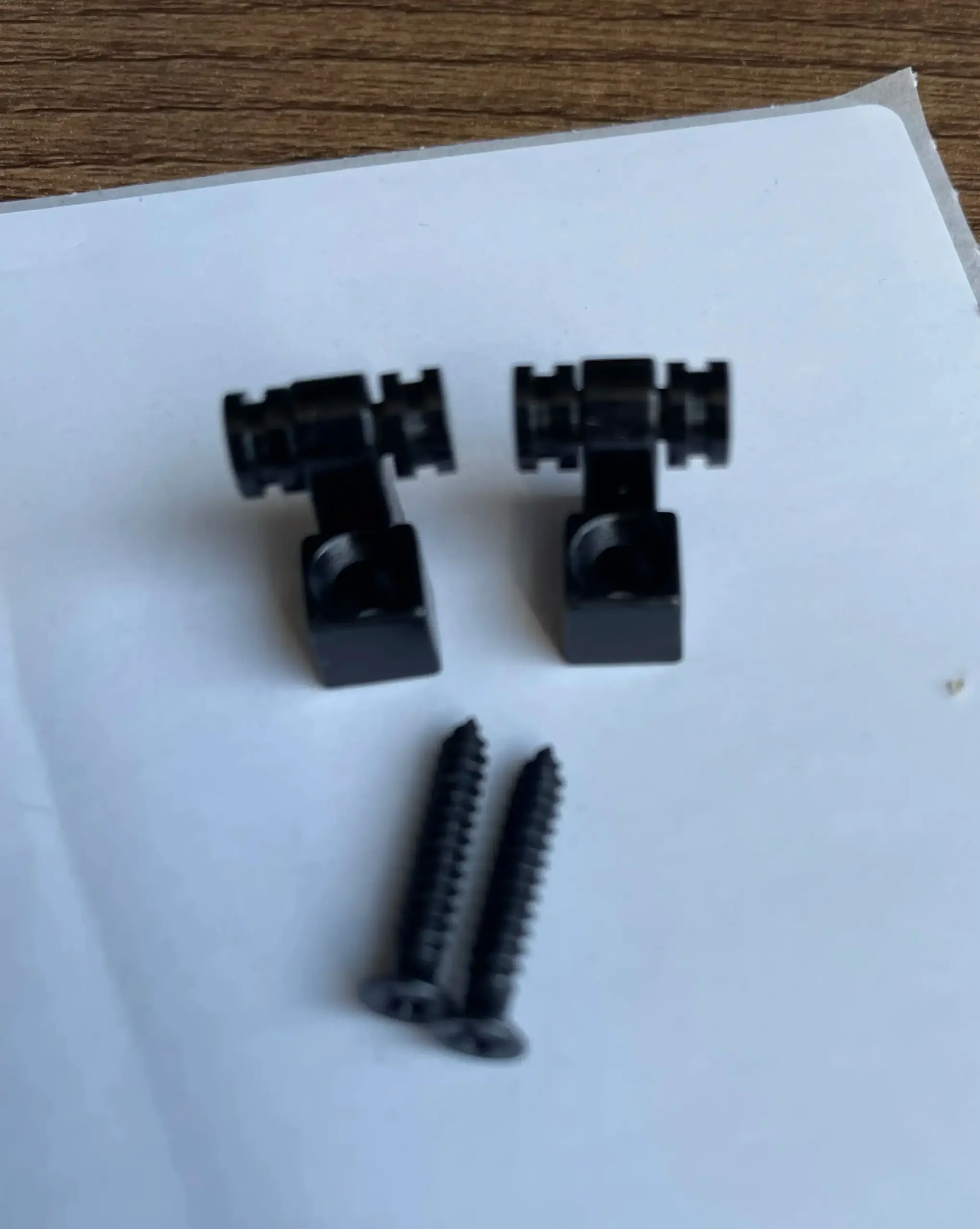 Enhance your electric guitar’s performance and aesthetic with this set of two high-quality metal roller string retainer trees available in black, gold, or silver finishes. Crafted from chemical-free materials, these durable mounting guides feature grooved cylindrical rollers that ensure smooth string movement, reducing friction and tuning issues. The sleek, slightly curved rectangular mounts are designed to seamlessly fit onto your guitar body, providing a professional and polished look. Perfect for customization and maintenance, these string trees are essential for any serious guitarist seeking reliable components that combine function with style.