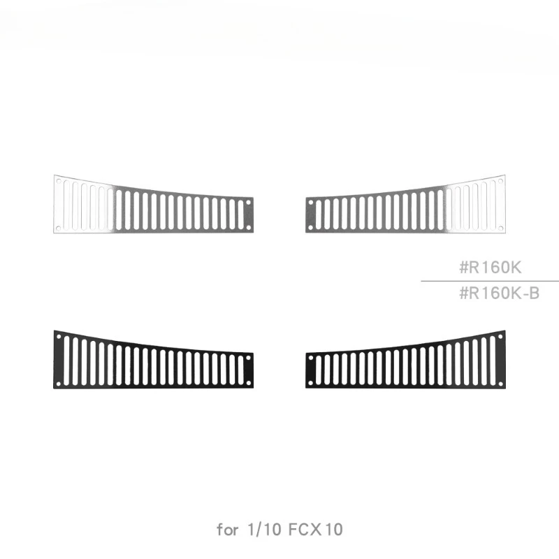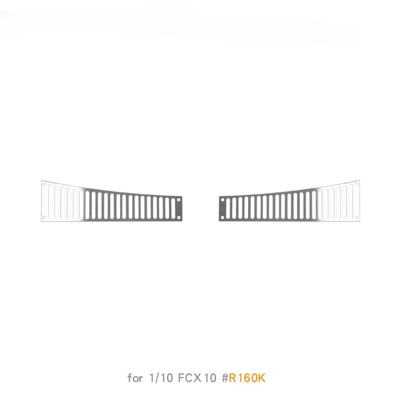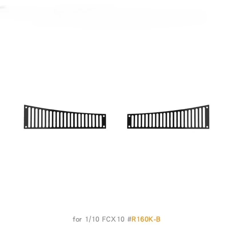 Imagine transforming your RC vehicle into a more rugged, industrial-looking masterpiece with this set of decorative metal grilles. Designed specifically for 1/10 scale models like FMS FCX10 and LC80, these grilles add a sleek, technical aesthetic while enhancing heat dissipation. Crafted from durable metal with a smooth, metallic finish, they come in black and silver options to match your style. The elongated, slightly curved rectangular design features evenly spaced vertical slats that blend form and function seamlessly. Securely attach these grilles using the included screws, giving your RC car a customized look that stands out. Not just visually appealing, these upgrade parts improve airflow and cooling for your model’s components, making your RC adventures more enjoyable and reliable.