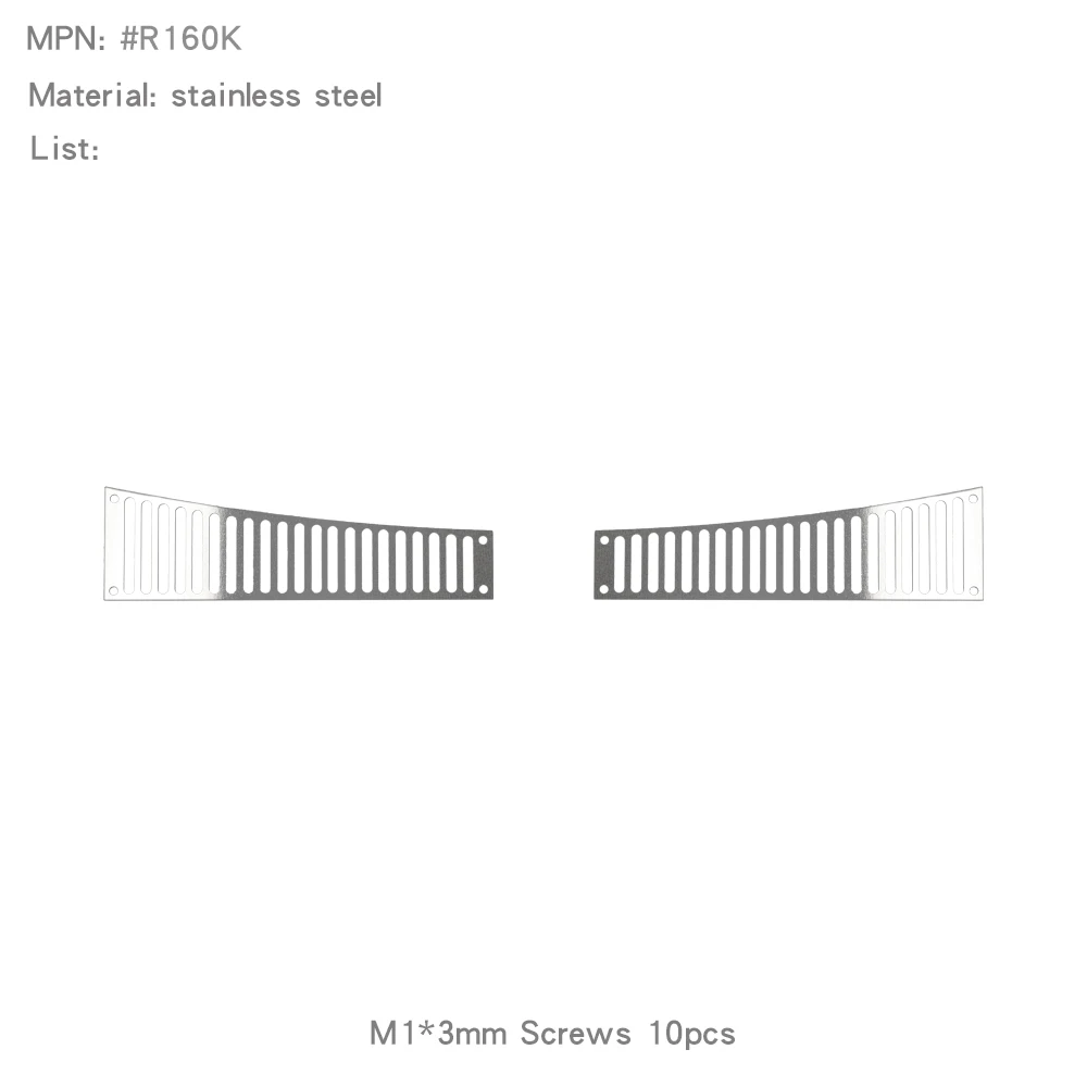 - Designed as a non-electrical upgrade part, these grilles do not require batteries, power supplies, or chargers, offering a simple, effective way to upgrade your RC vehicle’s appearance and thermal management.
