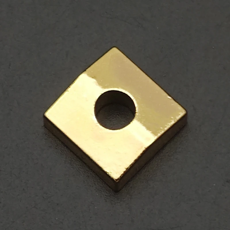 Transform your guitar setup with this set of six metal locking nut blocks, designed specifically for tremolo bridge electric guitars. Each block boasts a sleek, polished metallic surface that reflects high-quality craftsmanship, ensuring both durability and style. The blocks come in three stunning colors—black, gold, and silver—allowing you to customize your instrument’s appearance with a sophisticated touch. Measuring approximately 11.2 mm in length and width, with a thickness varying from 2.9 mm to 4.5 mm, these components are perfect for upgrading or repairing your guitar's locking nut system. Their precise design guarantees a secure fit, enhancing tuning stability and playability while maintaining an elegant aesthetic.