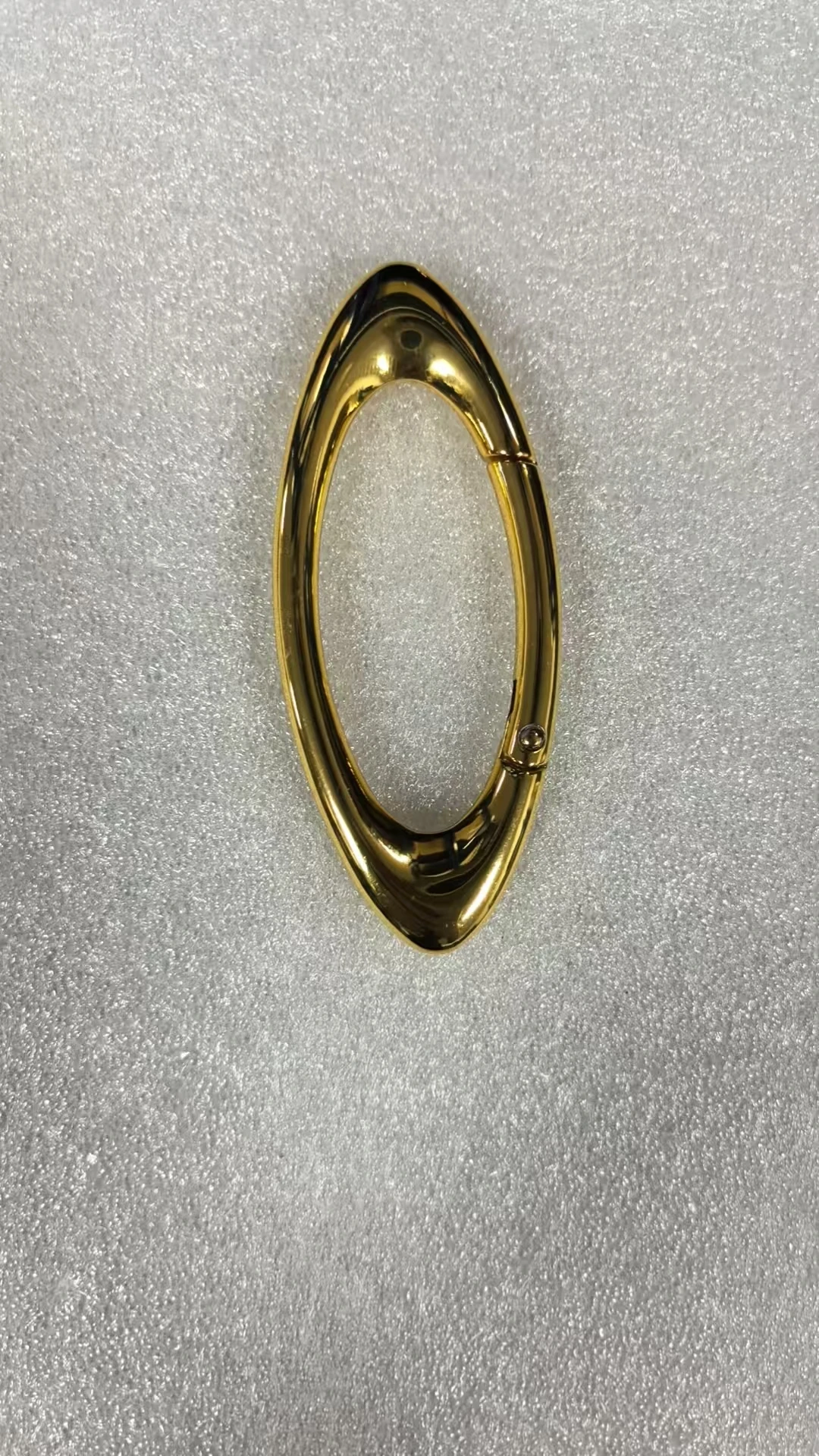 - Features an elongated oval shape with a hinged clasp for easy attachment, combining simplicity and functionality seamlessly.