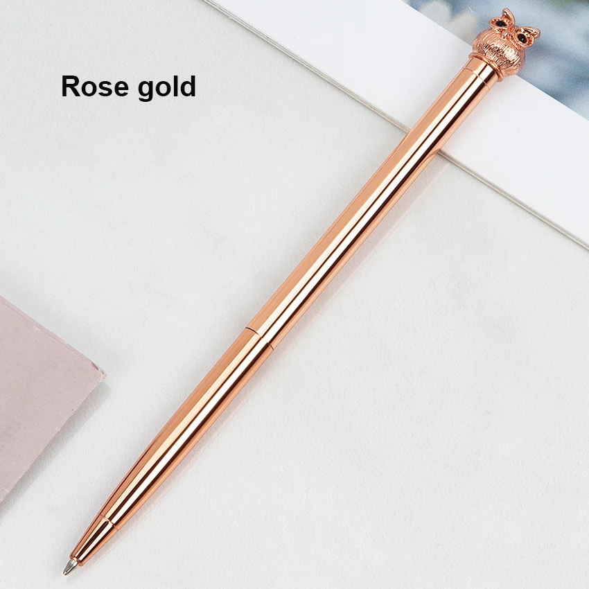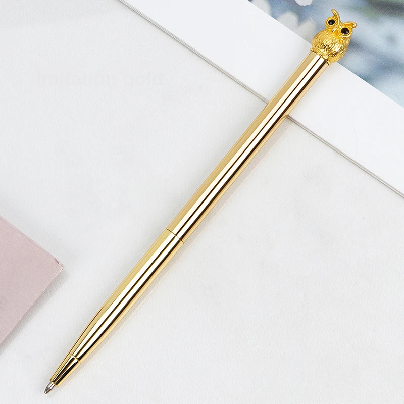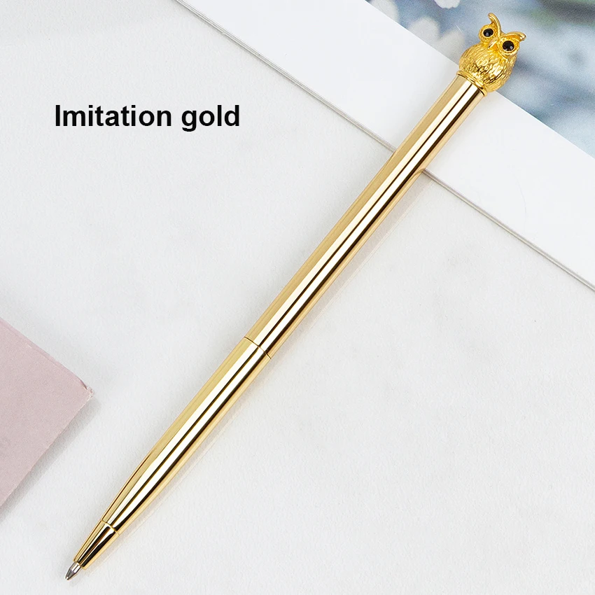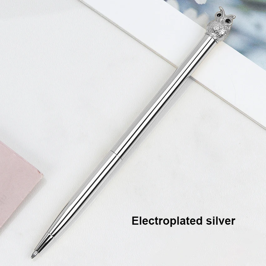 Enhance your writing experience with this stylish metal owl ballpoint pen. Measuring 15.5 cm long and 0.7 cm in diameter, it combines sophistication with practicality. The pen features a smooth, polished metal surface that catches the light beautifully, with a detailed owl embellishment at the top that adds a touch of whimsy and elegance. Available in imitation gold, electroplated silver, grey, and rose gold, each pen offers a distinct and luxurious appearance. Perfect for personal use, corporate gifts, or promotional events, this pen is designed to impress and inspire confidence in every stroke. Its erasable ink makes it versatile for a variety of writing tasks, while its durable construction ensures long-lasting use.