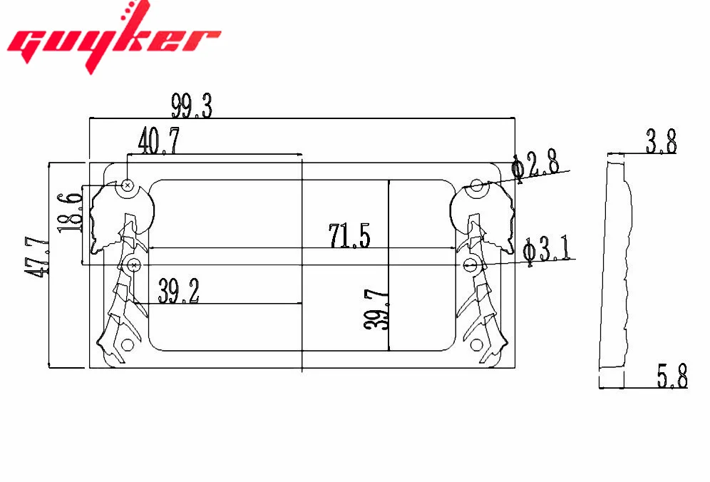 - Rectangular shape with a flat bottom, designed to fit humbucking pickups on electric guitars or precision basses.