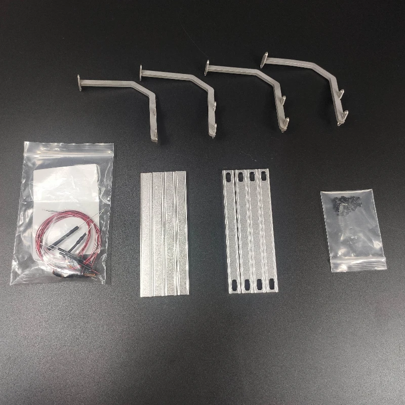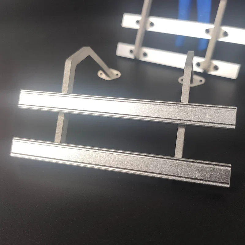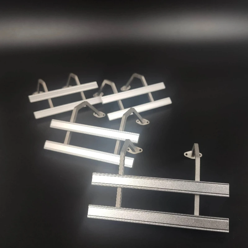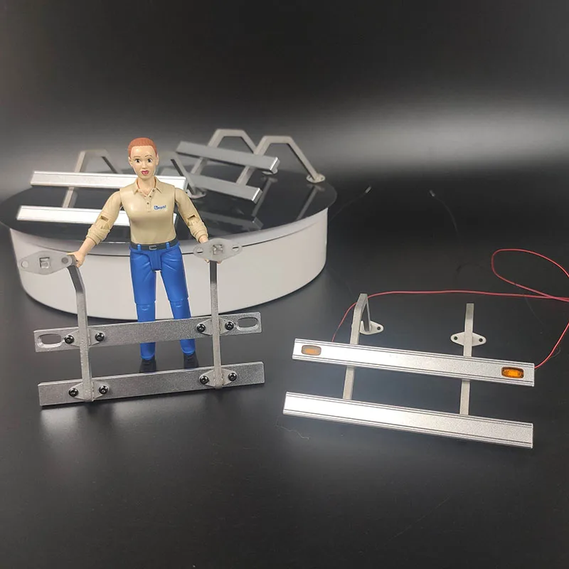 Upgrade your 1/14 scale RC truck with this sleek silver metal side fence fuel tank decoration and protection bar, designed for models like Scania, MAN, Benz, Mercedes Actros, and IVECO. Crafted from durable metal with a polished finish, this set includes four L-shaped brackets and four reinforcement strips, all precisely cut and finished for a seamless, industrial look. The components attach securely with included screws, enhancing both functionality and aesthetics of your trailer tippers or trucks. Suitable for RC enthusiasts aged 14 and above, this accessory brings a refined, utilitarian style to your remote control vehicle, combining craftsmanship with practicality for a confident upgrade.