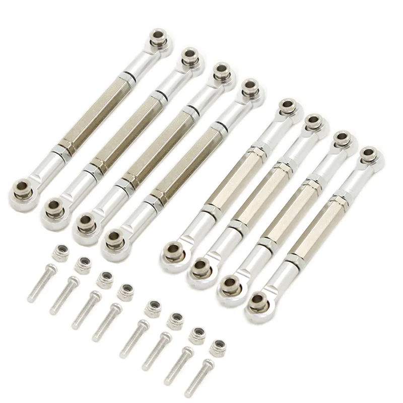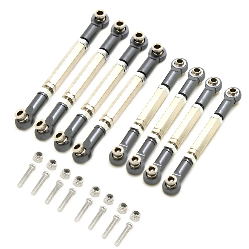 Upgrade your RC vehicle with this set of high-quality metal pull rods, available in titanium, blue, silver, red, and black finishes. Each lightweight rod weighs approximately 20 grams and includes short (59-69mm, steering rods 45-58mm) and long (64-74mm, steering rods 84-97mm) options, designed for precise adjustment and improved stability. Compatible with off-road models like WPL C14, C24, MN, D90, D91, D45, D96, D99, and more, these durable, well-machined metal rods feature threaded ends and spherical joints for flexible movement. Ideal for enhancing performance, durability, and control of your remote control car.