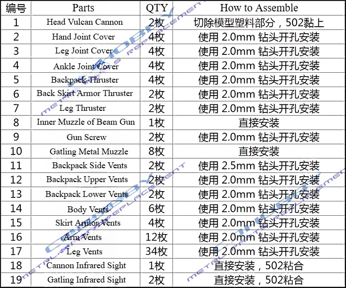 - Contains inner beam muzzle, gatling muzzles, infrared sight accessories, screws, and mounting points—ensuring compatibility and precise attachment to the original kit’s framework.
