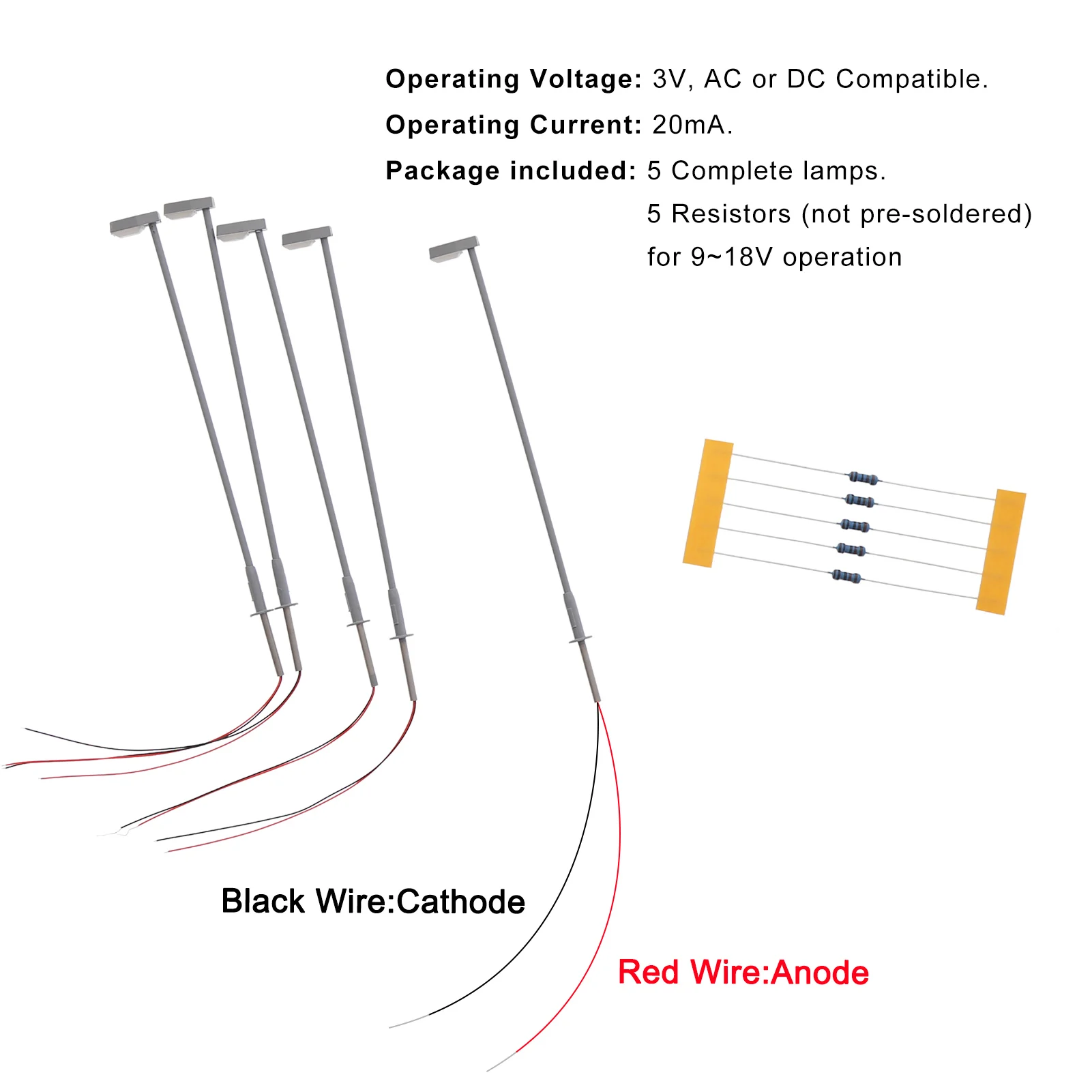 - Supplied with individual wires, LEDs, and five non-pre-soldered resistors suitable for 9-18V operation, ensuring safe, proper lighting without damaging the LEDs.