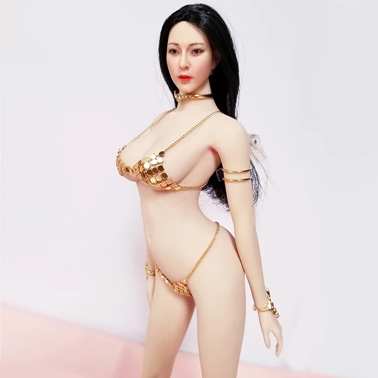 - This 1/6 scale set includes a metallic bikini, leaf-shaped necklace, and a pair of bracelets, available in striking silver and gold finishes for a glamorous look.