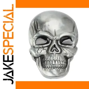 Step up your fashion game with this striking metallic skull belt buckle, designed for men who want to stand out. Crafted from durable metal, it features a highly polished, shiny surface in a silver tone, highlighted by subtle shading variations. The detailed skull design includes deep, hollow eye sockets with glossy black interiors, adding intense contrast and a menacing edge. Fine engraved lines and cracks give the buckle a rugged, realistic look, while its symmetrical, smooth contours mimic the natural skull shape perfectly. Suitable for Western cowboy or punk rock aesthetics, this accessory makes any outfit bold and memorable. It’s easy to mix and match, transforming your belt into an eye-catching statement piece.