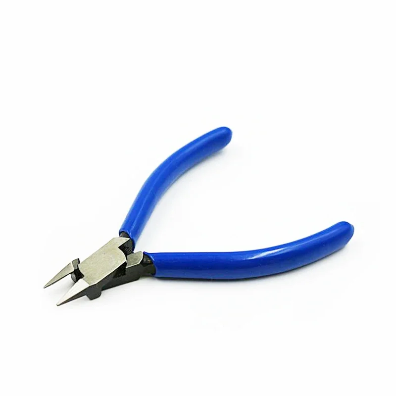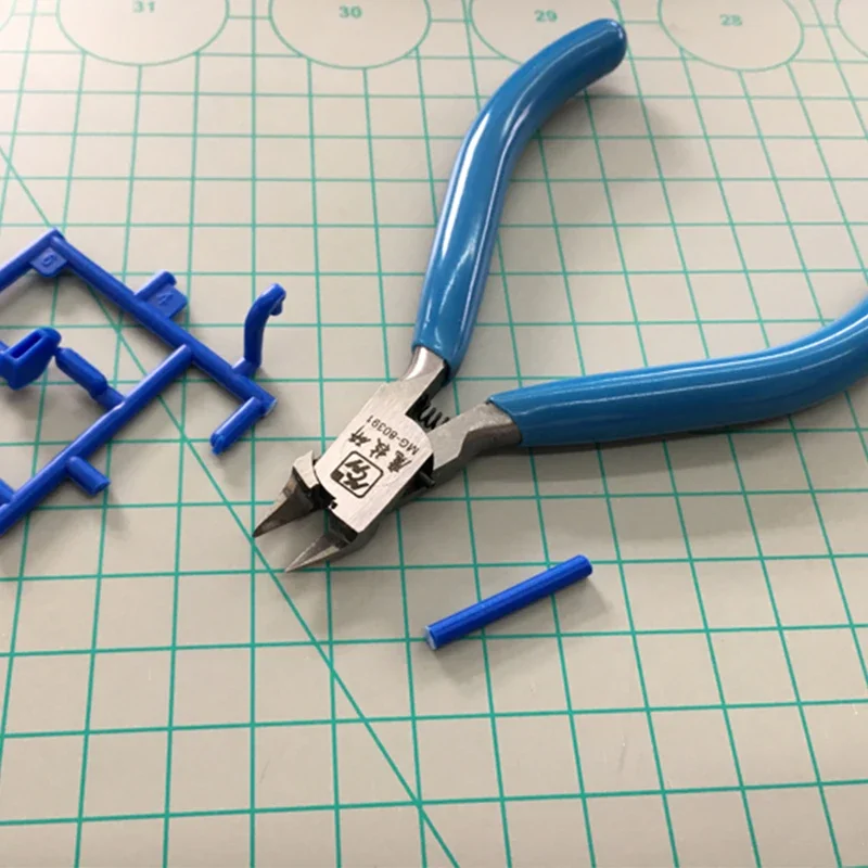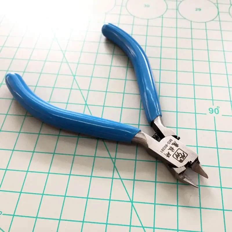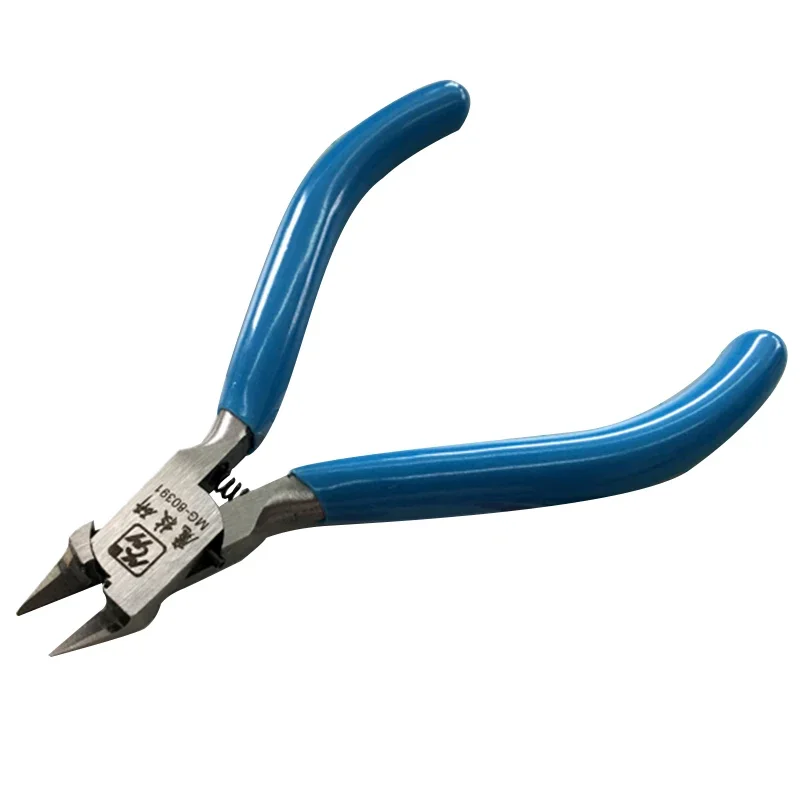 Experience precision with these MG-80391 diagonal cutting pliers, measuring 100mm in length. Made from durable alloy steel, they feature slim, sharply angled blades with a tapered tip for detailed craft and model work. Capable of cutting resin up to 3mm and copper wire up to 1mm, these plastic nippers are ideal for intricate projects. The vibrant blue plastic-coated handles provide a comfortable grip, supporting controlled, accurate cuts. Designed for durability and efficiency, these versatile pliers are perfect for hobbyists and skilled artisans alike, ensuring clean, precise results every time. Elevate your craft toolbox with these reliable, high-performance cutting pliers.