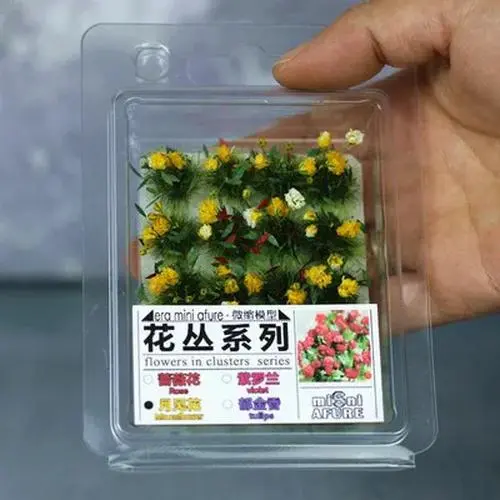 Transform your miniature scenes with this Micro Landscape DIY Accessories Building Garden Flower Cluster Model. Designed to enhance static grass dioramas, this beautiful collection features meticulously crafted artificial flowers in five stunning colors: red, blue, purple, white, and yellow. Each cluster comes with realistic green foliage accents, providing an elegant touch to any garden sand table layout. The transparent packaging offers a clear view of the vibrant arrangements, ensuring easy storage and display. By incorporating this model into your diorama kit, you’ll elevate your creations with lifelike detail that captures the essence of real blossoms.