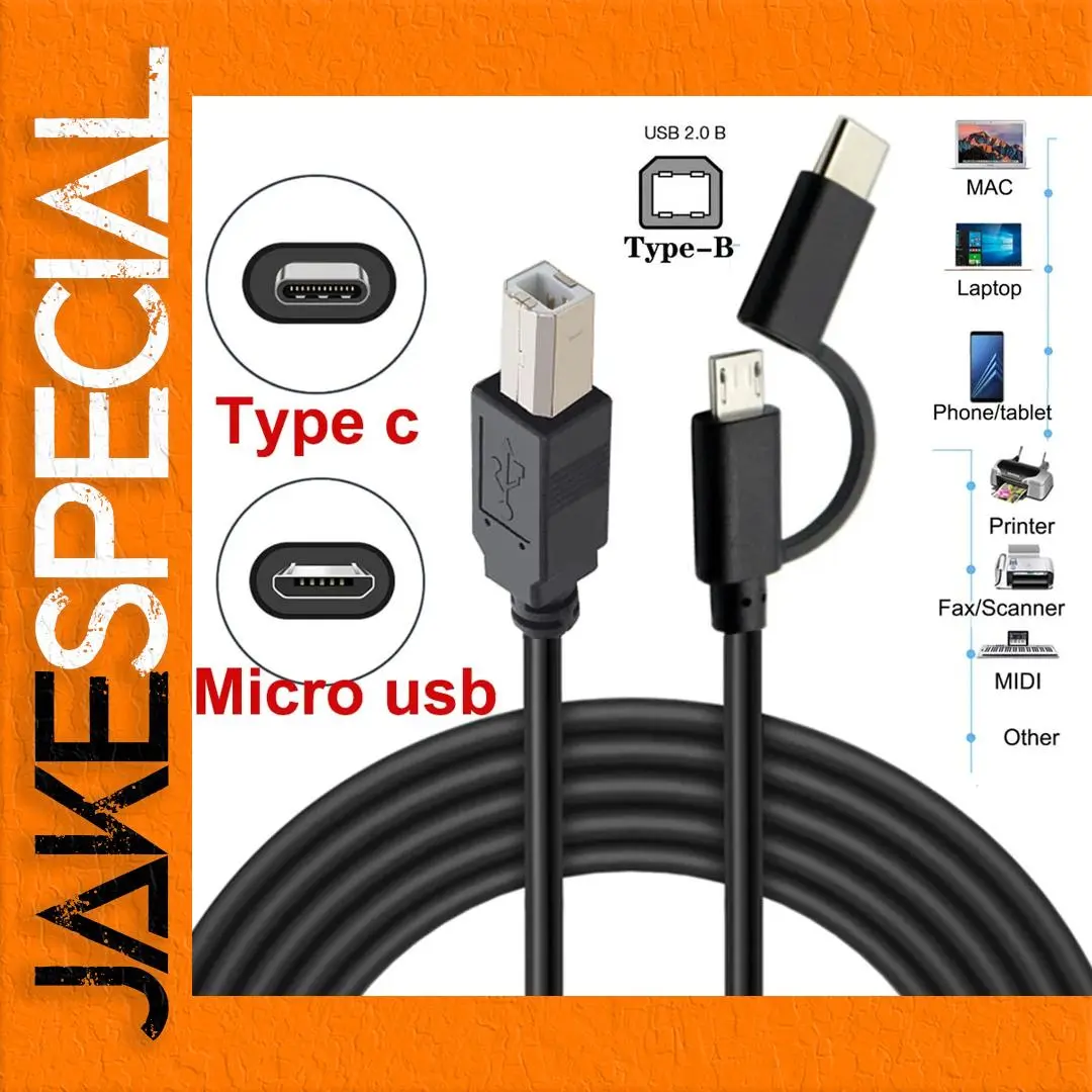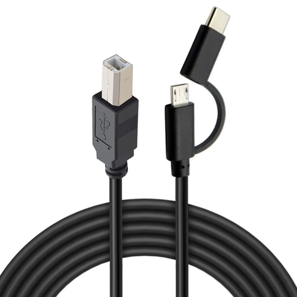 The Micro USB 2.0 + Type-C Male to USB 2.0 Type-B Male OTG Cable is a versatile 1-meter cable perfect for connecting smartphones, tablets, and laptops. It features a Micro USB A plug, a Type-C plug (USB 3.1), and a USB 2.0 Type-B plug, accommodating a wide array of devices including MP3/MP4 players, cameras, and smart devices. This cable supports OTG functionality, making it ideal for use with printers, scanners, electronic pianos, and electronic drums. Its sleek, black design and flexible construction ensure both aesthetics and practicality for your connectivity needs.