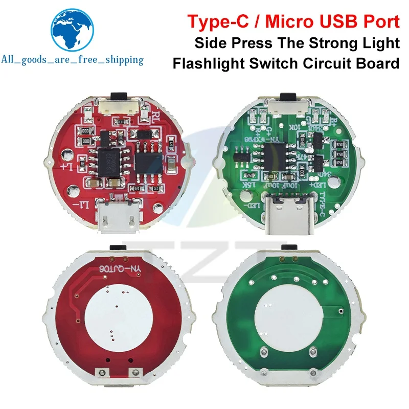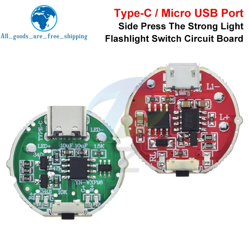 Experience the perfect combination of versatility and power with this sleek torch driver board. Designed with precision, it supports both Micro USB and Type-C USB interfaces, making it compatible with a wide range of power sources. With a robust three-speed control switch, you can easily toggle between different brightness levels, delivering a consistent 10W light output ideal for LED torch applications. The compact, high-quality circuit board boasts vibrant colors—vivid green and striking red—highlighting its organized layout and meticulous craftsmanship. Thoughtful design elements like mounting holes and neatly woven copper traces ensure durability and stability. This driver module is your go-to choice for creating reliable, powerful illumination in flashlights and related devices.