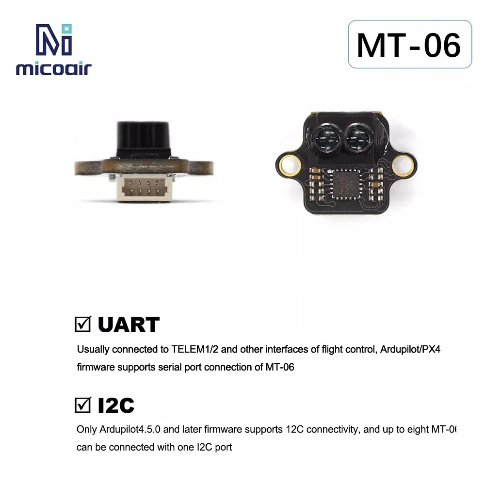 Imagine enhancing your RC FPV drone with precision laser ranging. This MicroAir MT-06 Module features a sleek, compact design in contrasting finishes: a white rectangular body with multi-pin connectivity and a matte black circuit board with small laser emitters. Its sophisticated appearance highlights high-tech engineering, ensuring reliable performance in outdoor environments. Designed to measure distances up to 6 meters, it supports connections via UART interface and is compatible with popular flight controller firmware like FMT, INAV, Ardupilot, and PX4. Whether upgrading your drone or building a custom remote vehicle, this module’s modern, minimalist aesthetic and technical robustness make it easy to integrate into your projects. Visualize precision, durability, and advanced functionality all in one module.
