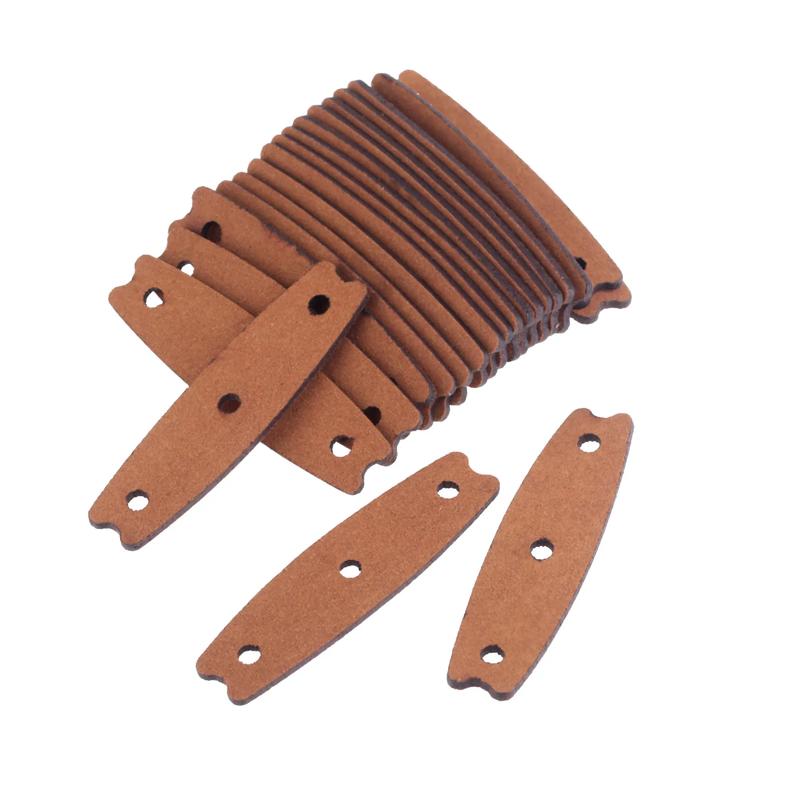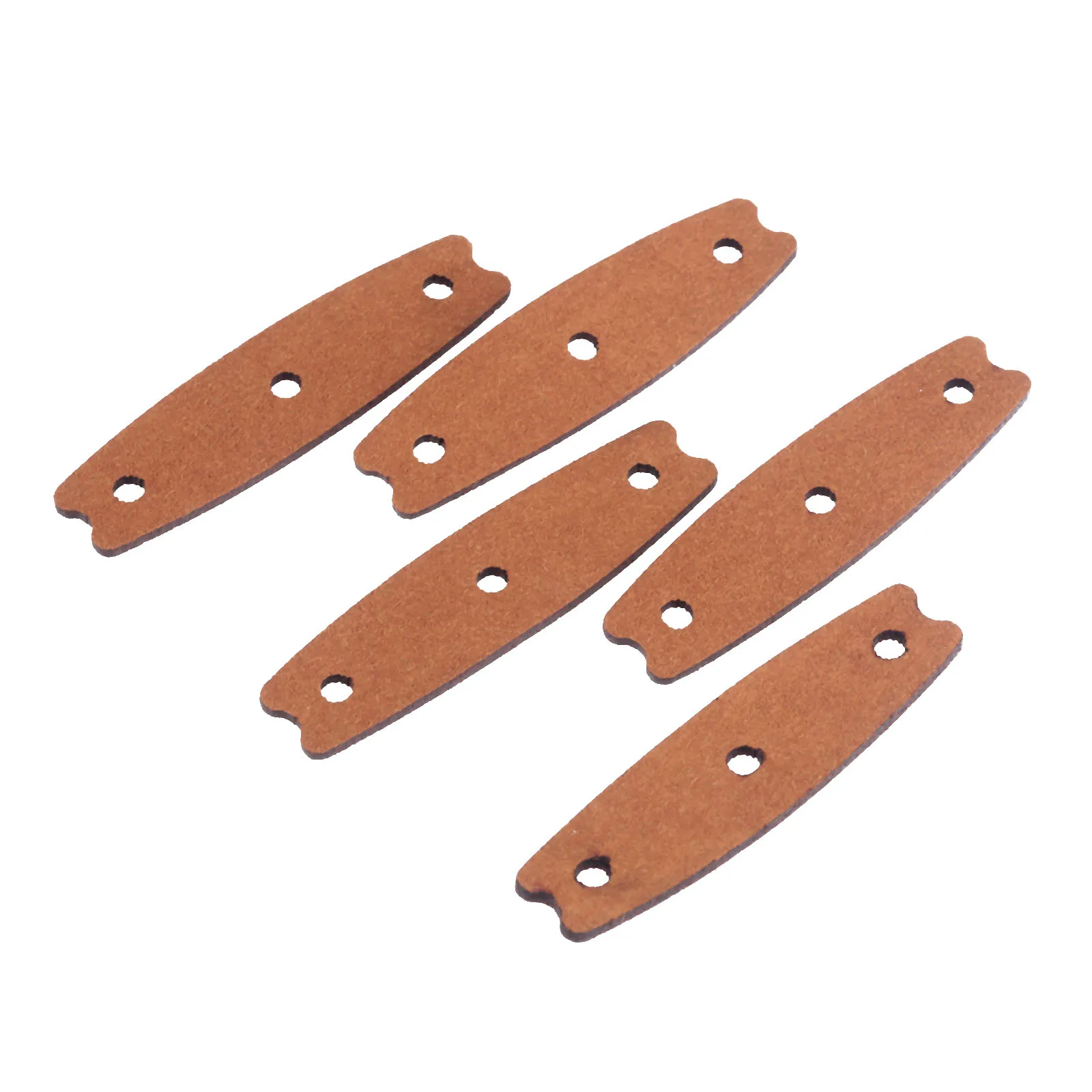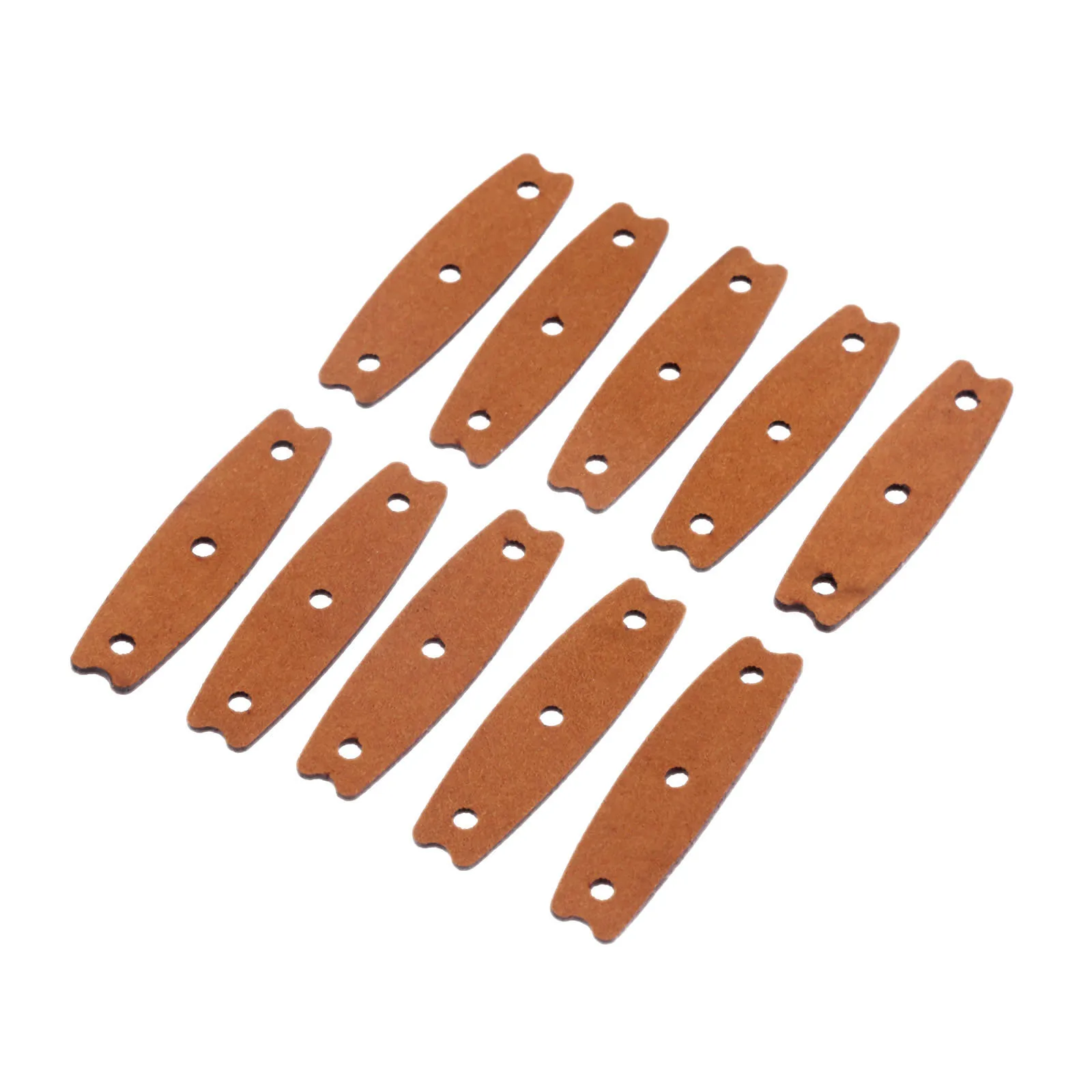 Enhance your hunting and shooting experience with these lightweight microfiber leather slingshot pouches, available in sets of 5, 10, or 20. Measuring 55mm (2.17″) in length, with a middle width of 15mm (0.59″), edge width of 10mm (0.39″), and a thickness of 1.5mm (0.059″), these pouches feature a smooth, matte finish and soft, flexible texture. Designed for reliability, they offer silencing and anti-slip properties, making them perfect for slingshots with a draw weight under 20 pounds. Their simple, uniform brown color and subtle scalloped edges add a refined look to your gear.