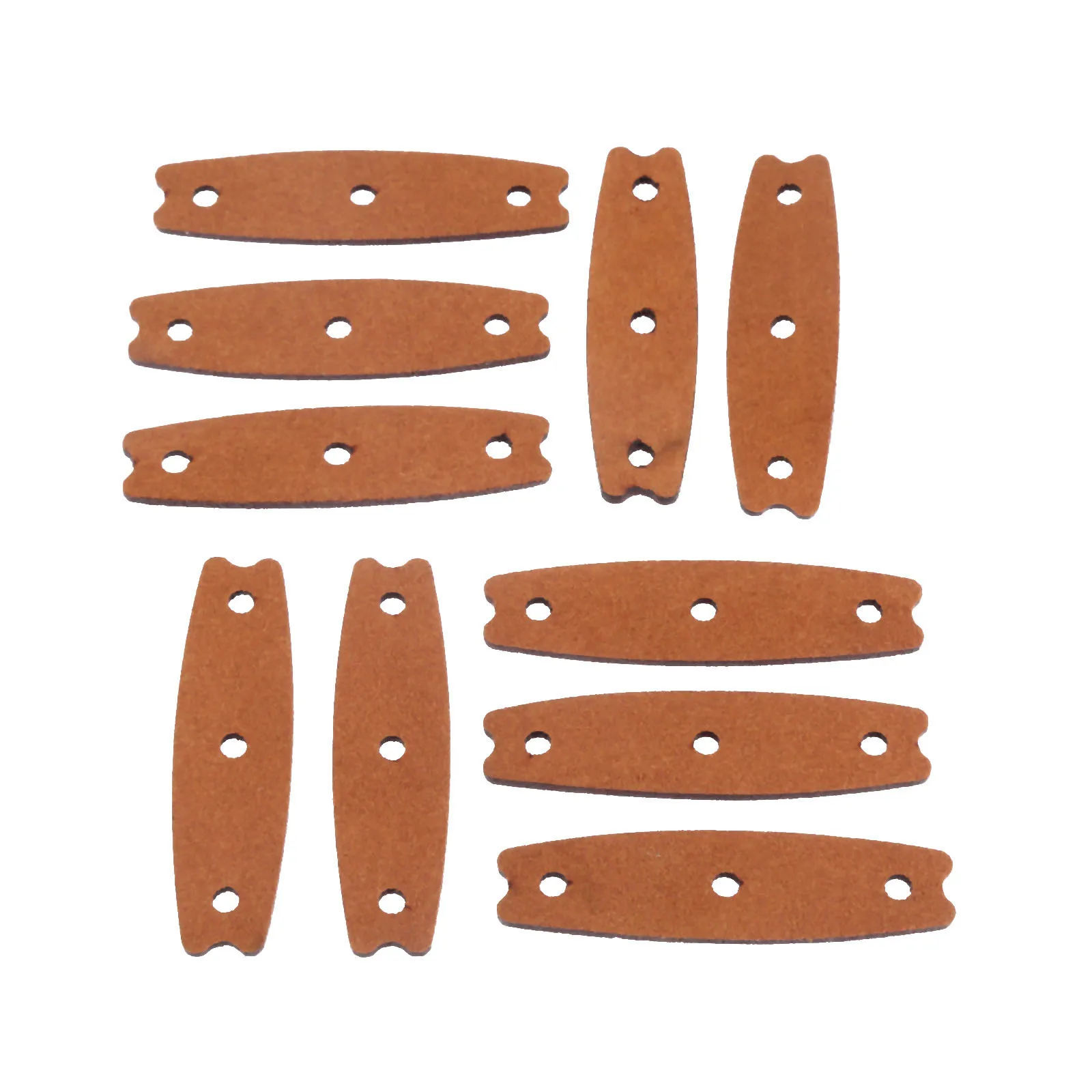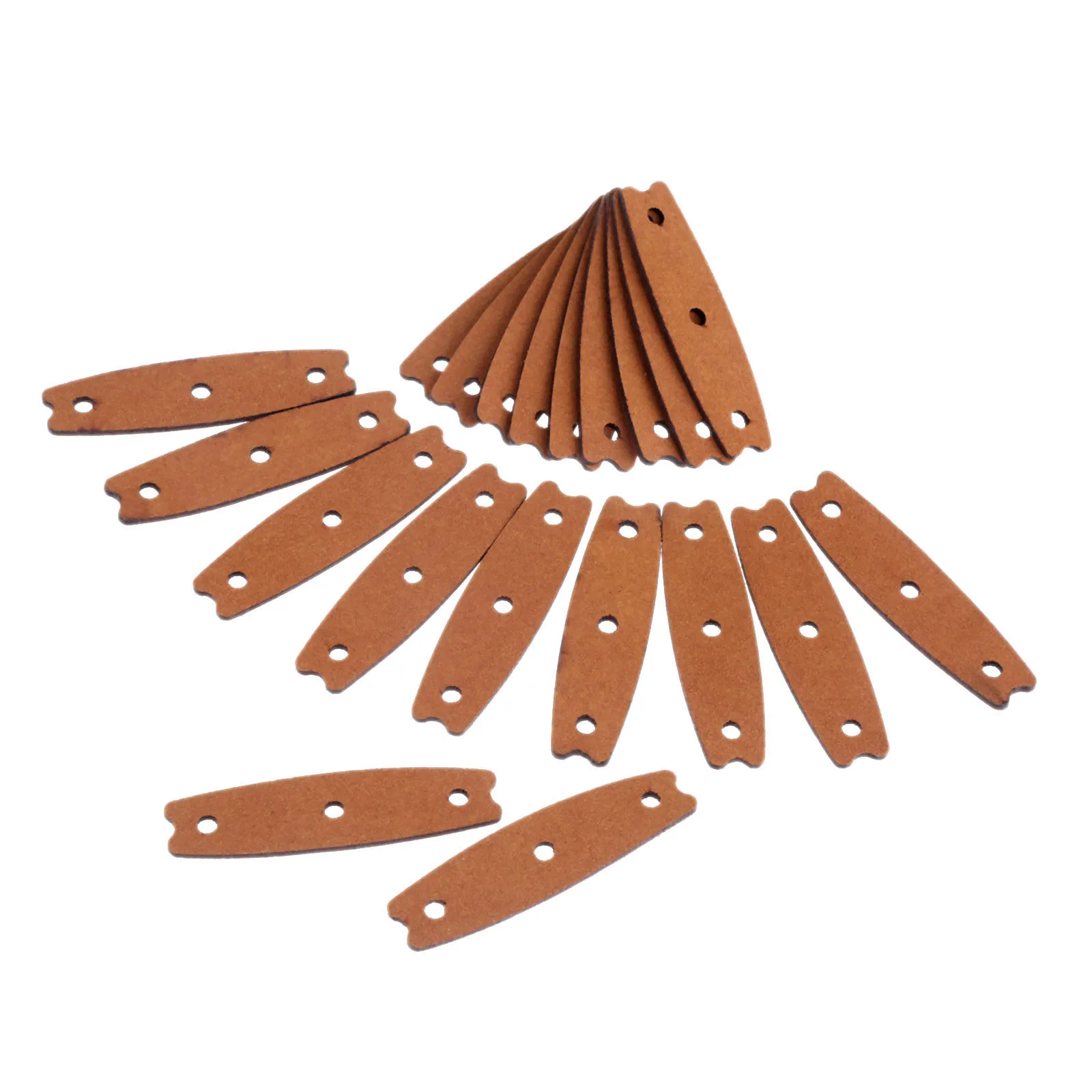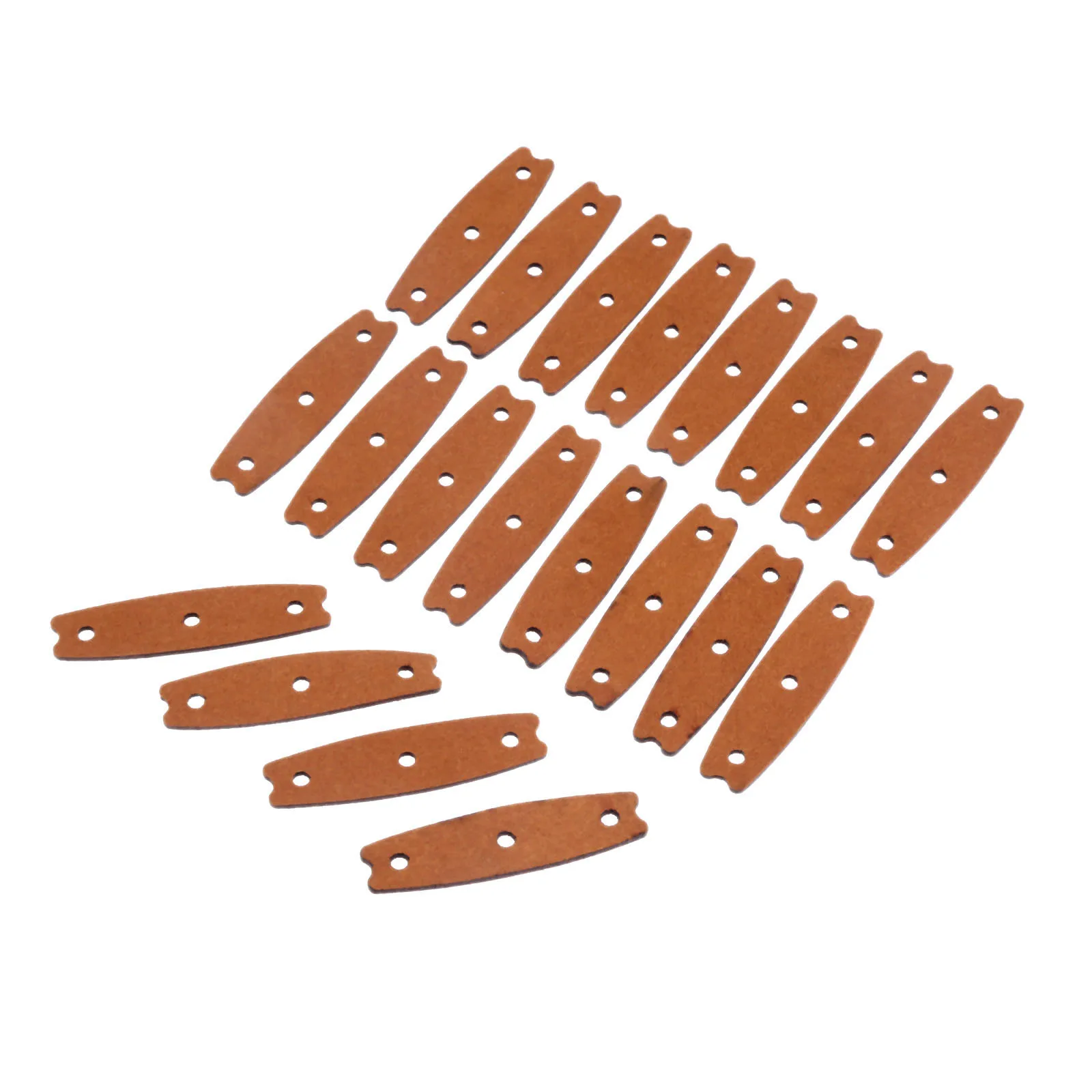 Enhance your hunting and shooting experience with these lightweight microfiber leather slingshot pouches, available in sets of 5, 10, or 20. Measuring 55mm (2.17″) in length, with a middle width of 15mm (0.59″), edge width of 10mm (0.39″), and a thickness of 1.5mm (0.059″), these pouches feature a smooth, matte finish and soft, flexible texture. Designed for reliability, they offer silencing and anti-slip properties, making them perfect for slingshots with a draw weight under 20 pounds. Their simple, uniform brown color and subtle scalloped edges add a refined look to your gear.
