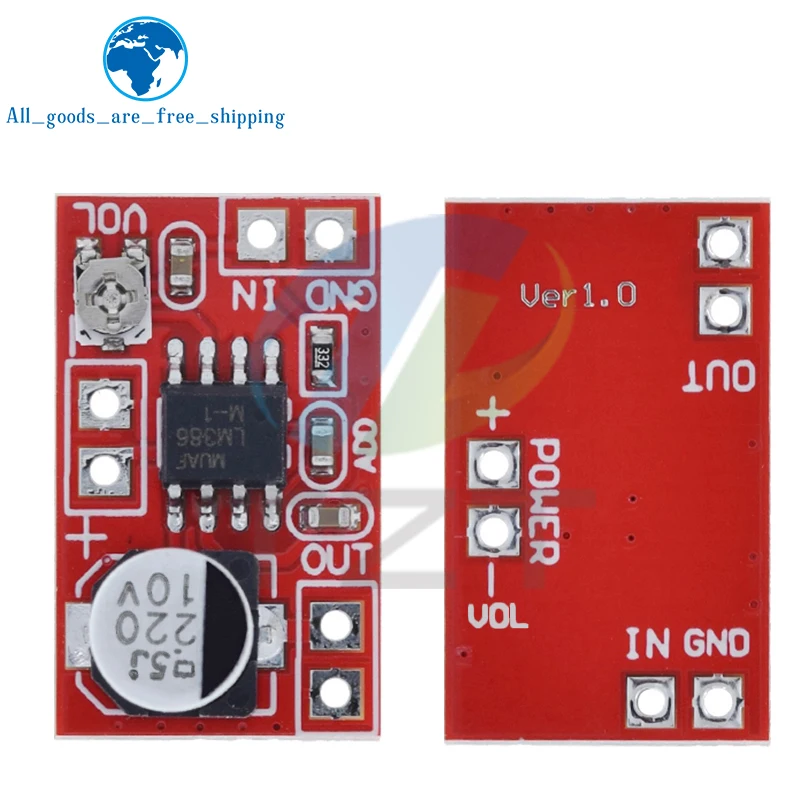 - White silkscreen labels such as “VCC,” “GND,” “IN,” and “OUT” facilitate quick setup and troubleshooting, ideal for DIY audio projects.