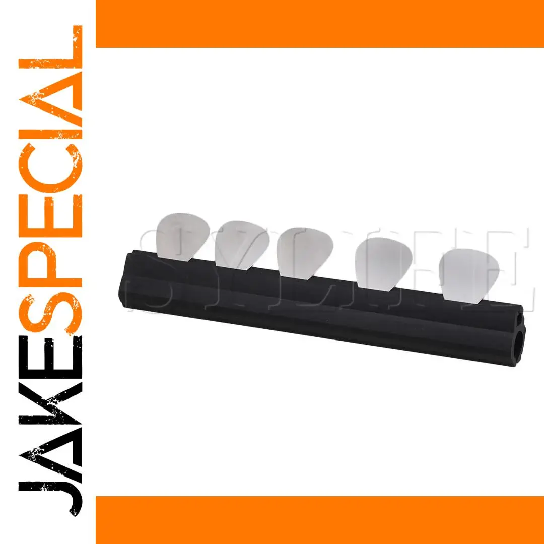 Imagine having your favorite guitar picks within arm’s reach during every performance or practice session. This compact pick holder, designed to clip onto your microphone stand, combines functionality with modern style. Made from high-quality plastic and stainless steel, it weighs just 72 grams, making it lightweight yet durable. The matte black rail features five white, pick-shaped slots that hold your picks securely and effortlessly, with smooth, tapered openings for quick access. Resting on top are five glossy silver guitar picks, giving your setup a touch of elegance. Whether you're a professional performer or an enthusiastic hobbyist, this practical accessory ensures your picks are always ready, keeping your rhythm flowing smoothly.