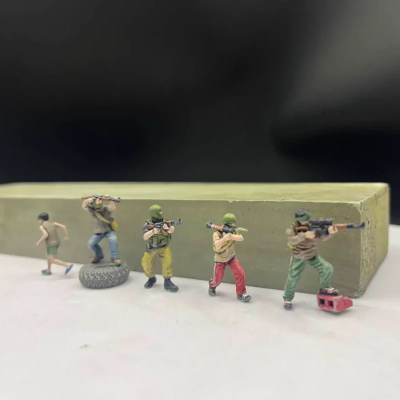 - Five highly detailed resin figures in 1/72 scale depicting military combat poses with painted lifelike features.