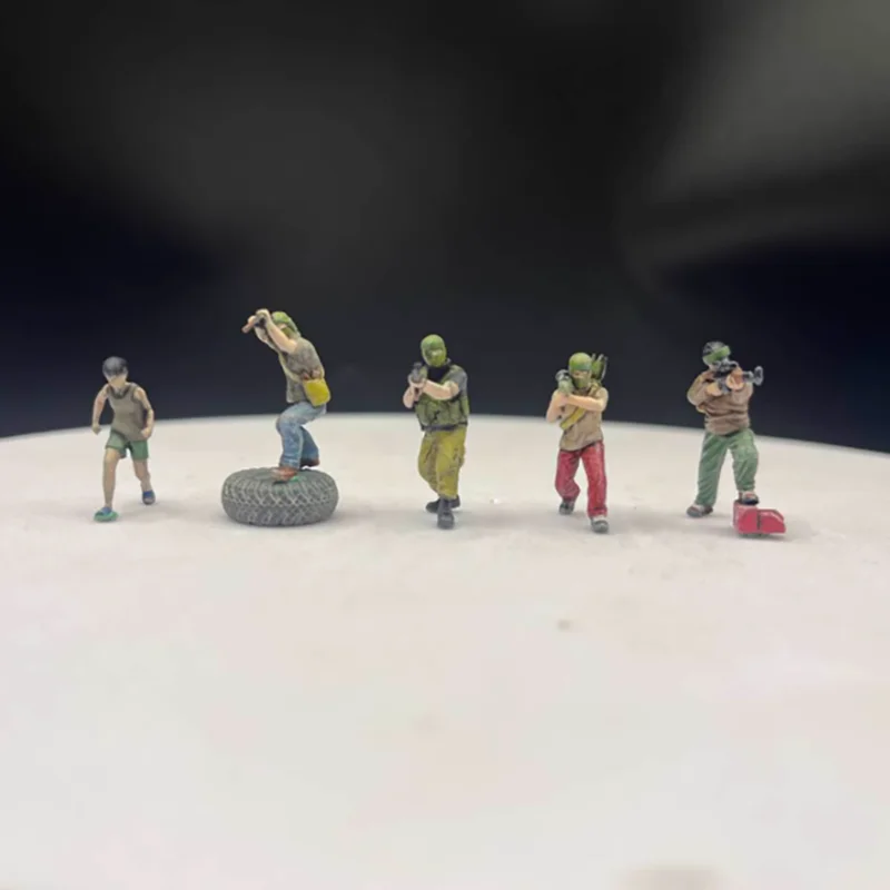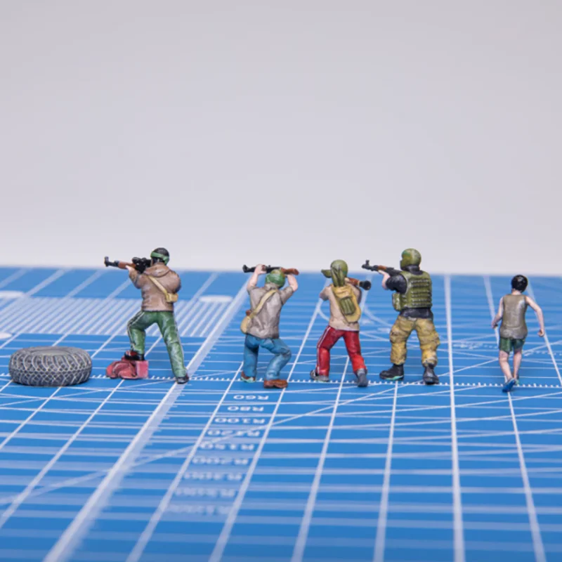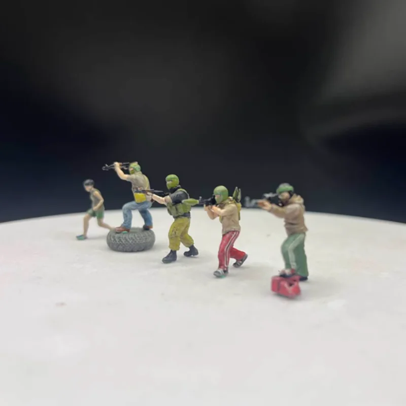 Step into a realistic military scene with this detailed set of five 1/72 scale resin figures, each capturing a different combat pose. Featuring vibrant painted details, these figures showcase diverse uniforms, tactical gear, and accessories, including helmets and aiming postures. The set also includes a small black tire to enhance authenticity. Perfect for dioramas, collection displays, or enhancing military scenes, these finely crafted models bring action and realism to your display. Enjoy assembling a dynamic scene that highlights military readiness and diverse attire. Crafted with precision, they add an authentic touch to any collection or diorama, allowing you to recreate realistic scenarios with ease. Masked in bright colors, but designed for realistic authenticity.
