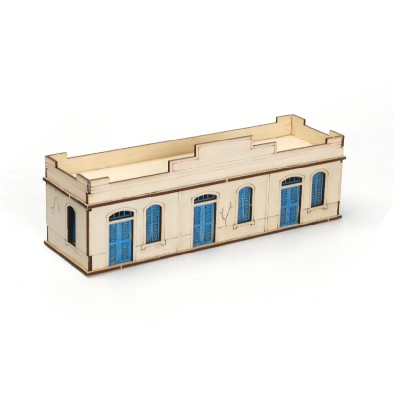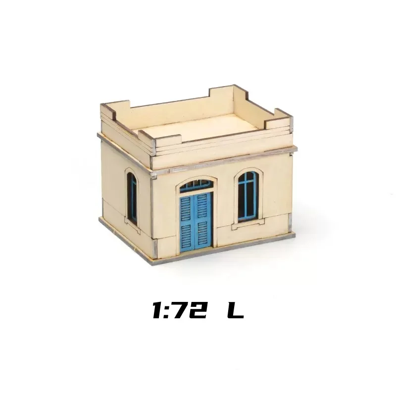 Immerse yourself in the craftsmanship of this beautifully crafted wooden assembly puzzle featuring a traditional Middle Eastern city building. Designed at a 1/72 scale, this model captures authentic architecture with arched windows, ornate trims, and a flat roof. The inclusion of two vibrant blue doors and a small balcony enhances its detailed, realistic appearance. Crafted from natural, unfinished wood, the assembly highlights precise cuts and clean joints, providing a satisfying DIY experience. Perfect for hobbyists aged 12 and above, this set invites you to create a charming, decorative miniature that reflects cultural richness and artisanal skill. Use it as a striking display piece or an engaging handmade gift for architecture lovers and hobby enthusiasts.