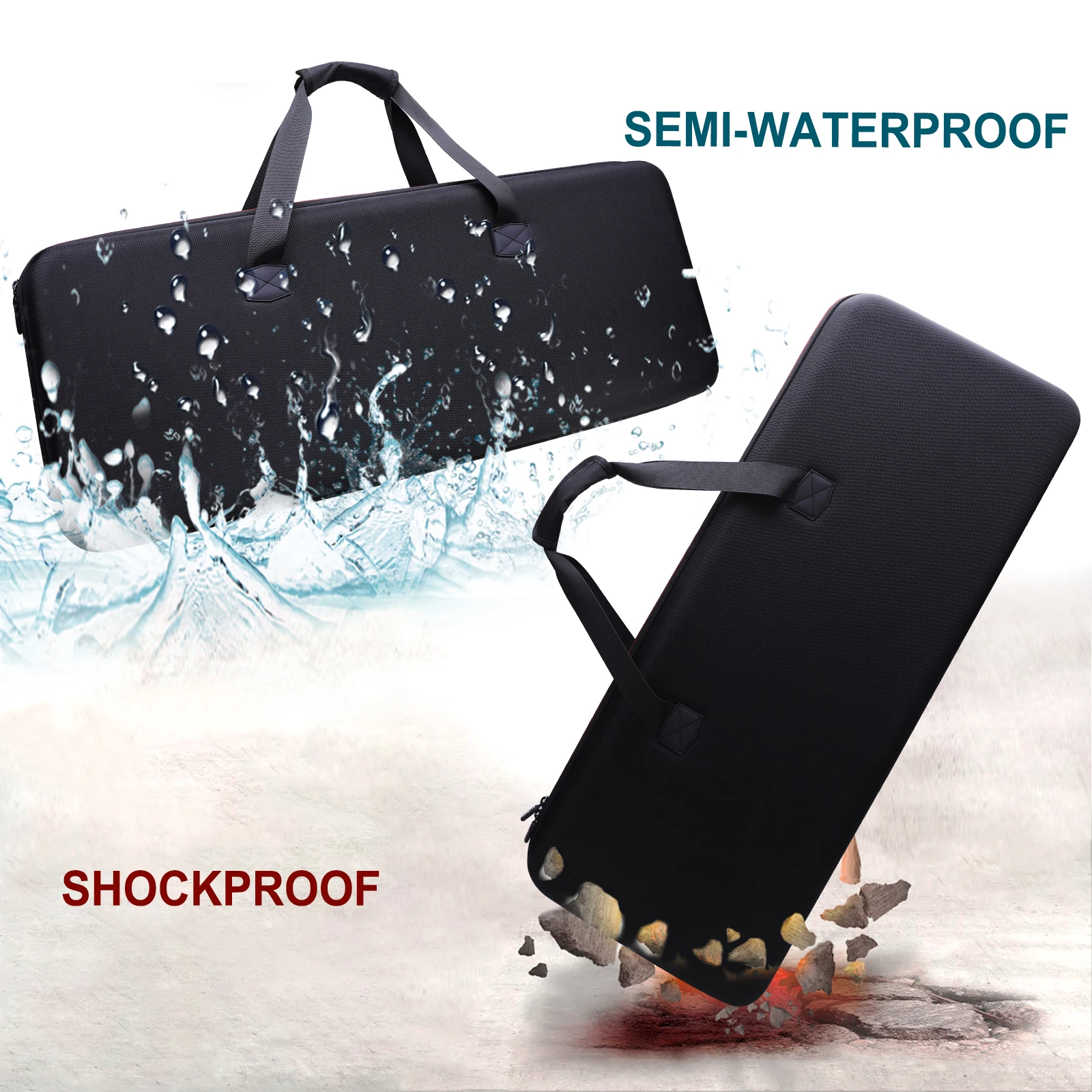 - Outer shell made from semi-waterproof, shockproof EVA material that offers durable protection against splashes and impacts during transport.