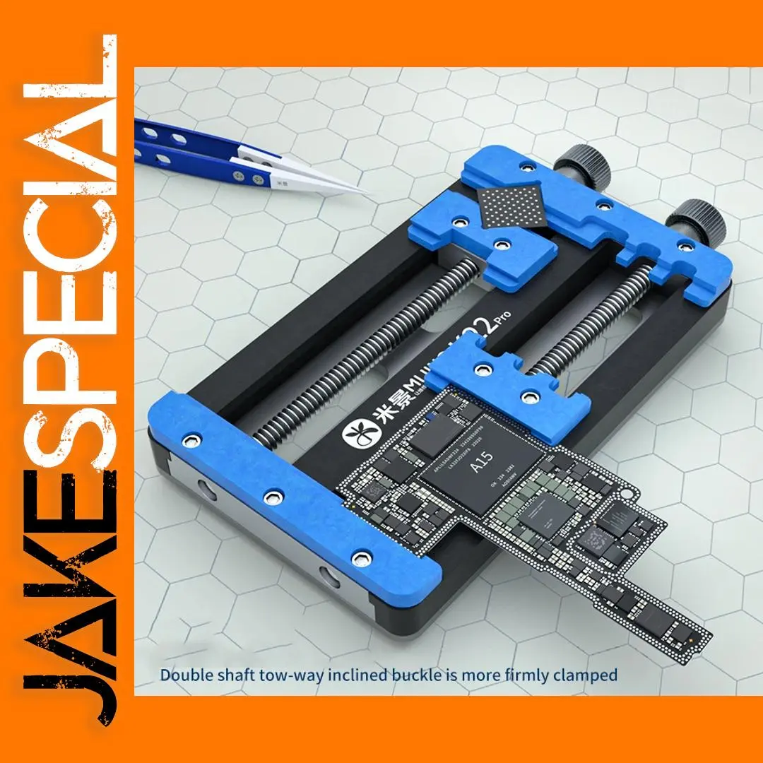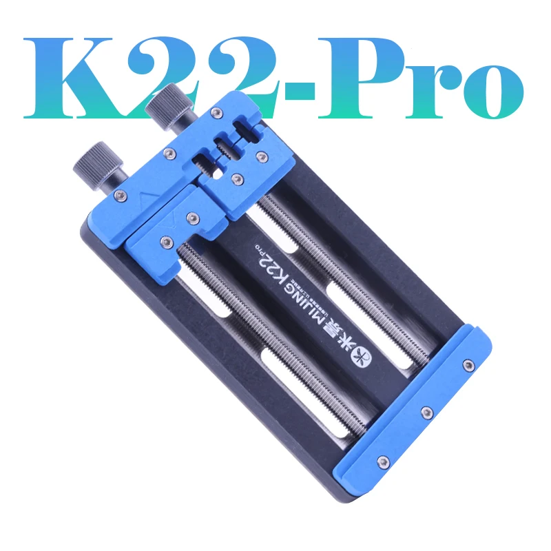 The Mijing K22 Pro Universal Phone Mainboard Maintenance Fixture is an essential tool for mobile phone repair enthusiasts. This double-axis PCB holder features adjustable blue clamps that securely hold your circuit board in place, allowing for precise soldering and maintenance work. Made from high-temperature resistant synthetic stone, it resists corrosion and static, making it ideal for delicate electronic repairs. Visualize yourself confidently tackling your next repair project, knowing you have the right tools to get the job done efficiently. Enhance your repair experience with this robust and reliable fixture, designed to make your work easier and more precise.