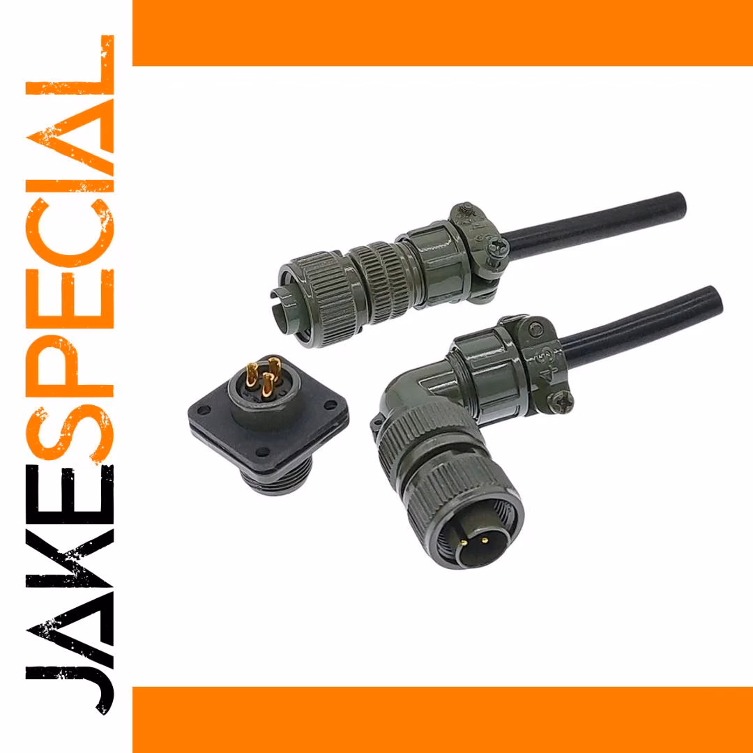 Experience the durability and reliability of this this MIL-C-5015 circular connector by CNMAWAY. Designed with military-grade standards, it features a robust olive green matte finish that resists harsh environments. The set includes models 10SL-3 and 10SL-4, available in plug and socket configurations, offering versatile options for diverse industrial needs. The straight and angled connectors have threaded coupling rings, ribbed grips for ease of handling, and circular receptacles built for secure, lock-in connections. An additional black adapter with gold-plated pins provides extra functionality and flexibility for your applications. Rated for 220V power, this connector ensures stable performance in demanding military and industrial settings, emphasizing strength, safety, and dependable connectivity.