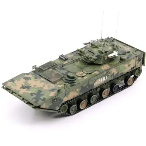 Picture yourself showcasing this impressive miniature of a military amphibious Infantry Fighting Vehicle, capturing the essence of modern combat craft. Crafted from high-quality PVC, this 1:72 scale model features a striking digital camouflage pattern in shades of green, brown, and black, perfectly aligned with island attack themes. Its sleek, angular design with detailed panel lines, hatches, rivets, and authentic markings such as “3201” and a star with “LNI” enhances realism. The rounded turret, main gun, and secondary weapons are intricately molded, demonstrating fine craftsmanship. The detailed tracks and undercarriage, including individual segment links and finely modeled wheels, add mechanical authenticity. This static display ornament offers a rugged, tactical aesthetic ideal for collectors and enthusiasts alike.