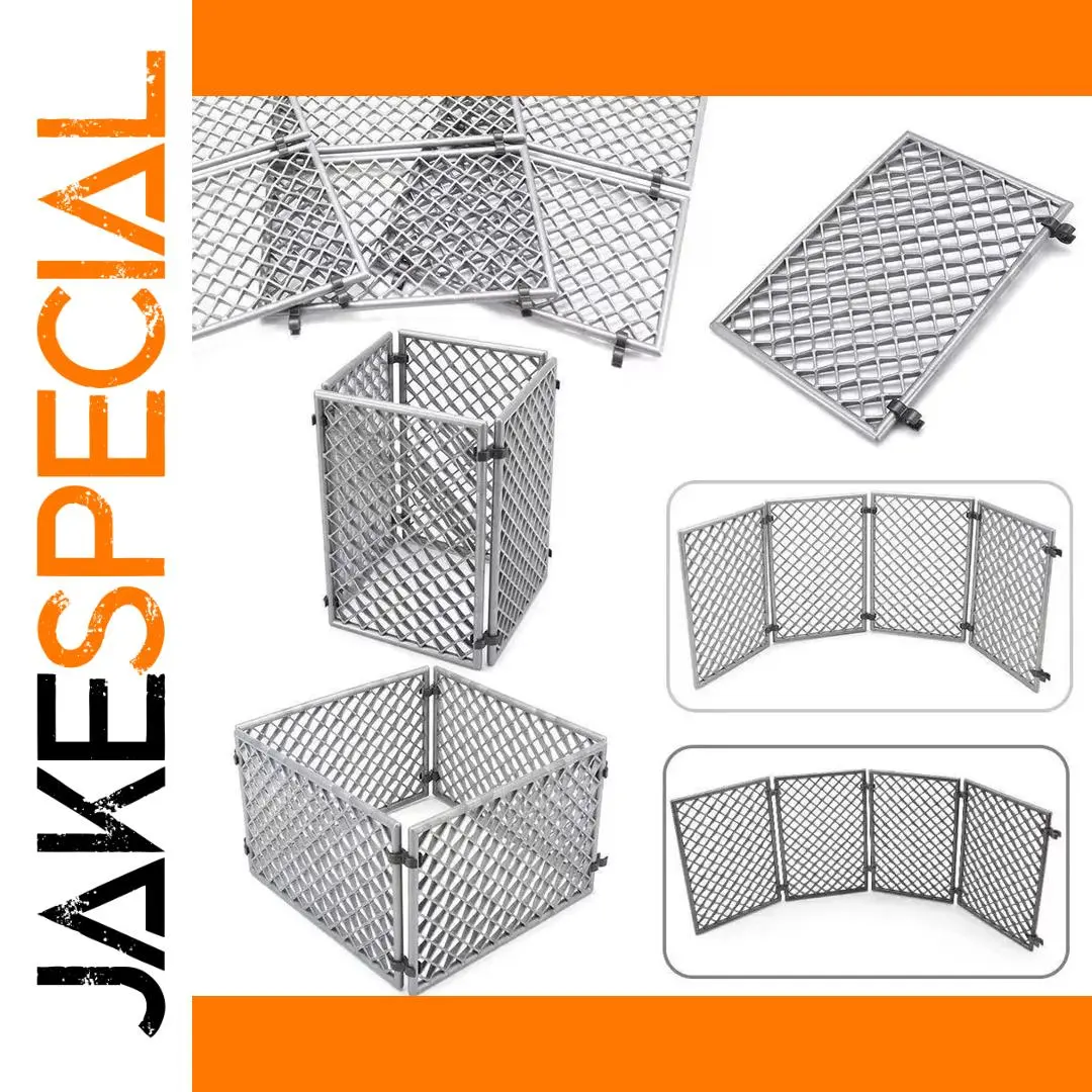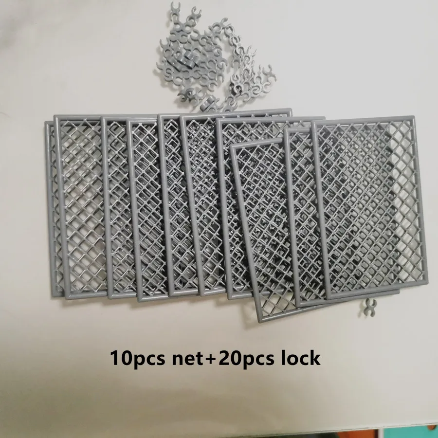 - Includes 10 small plastic building blocks with a silver metallic finish mimicking metal mesh fencing, perfect for realistic military base scenes and perimeter constructions.