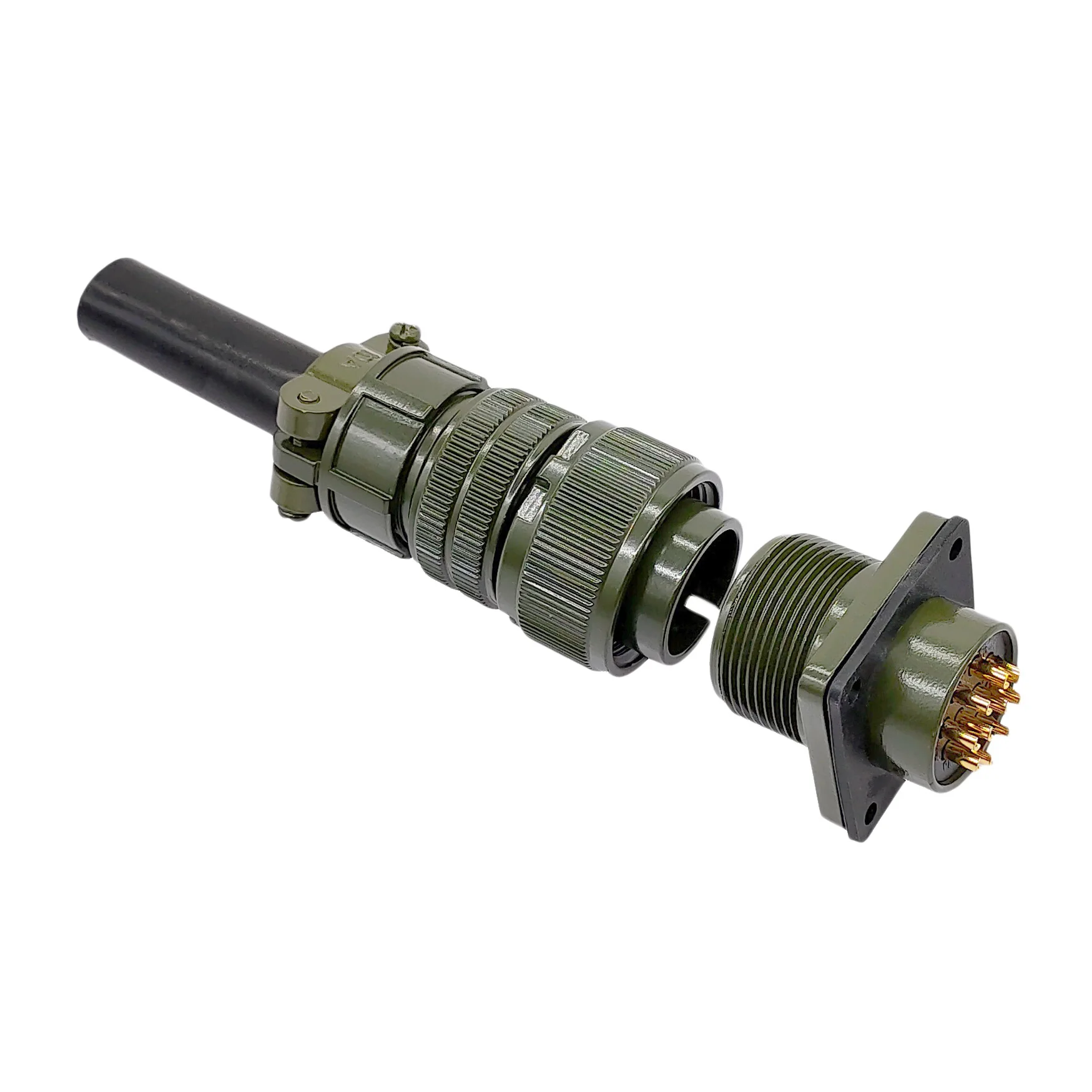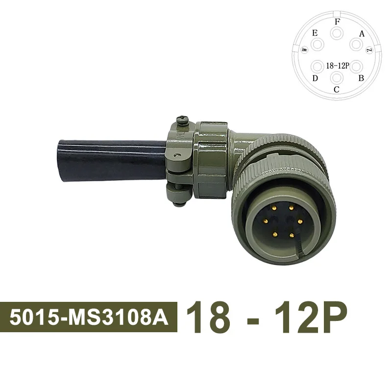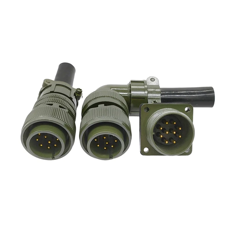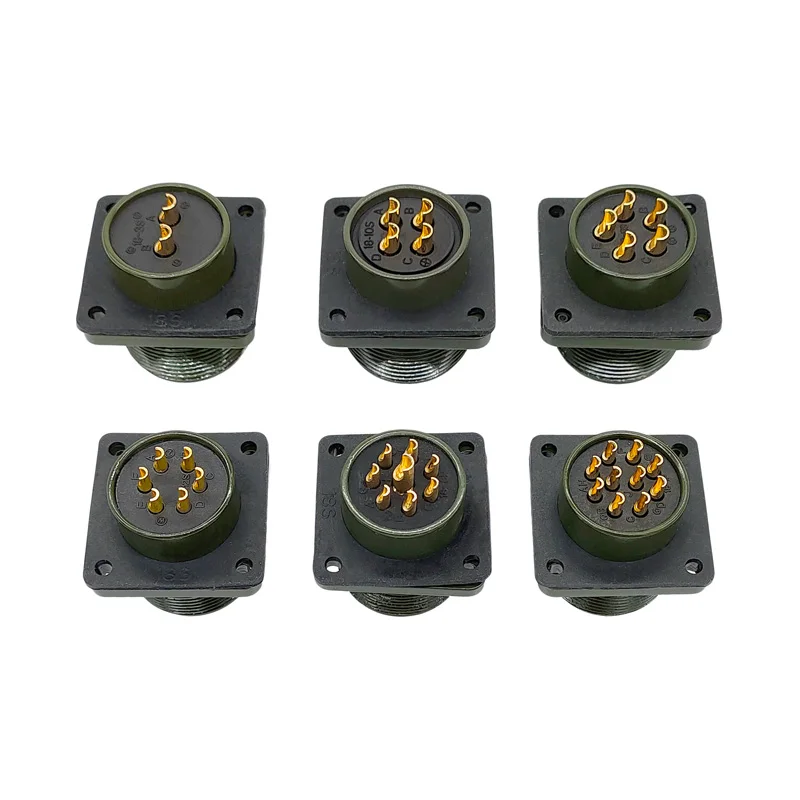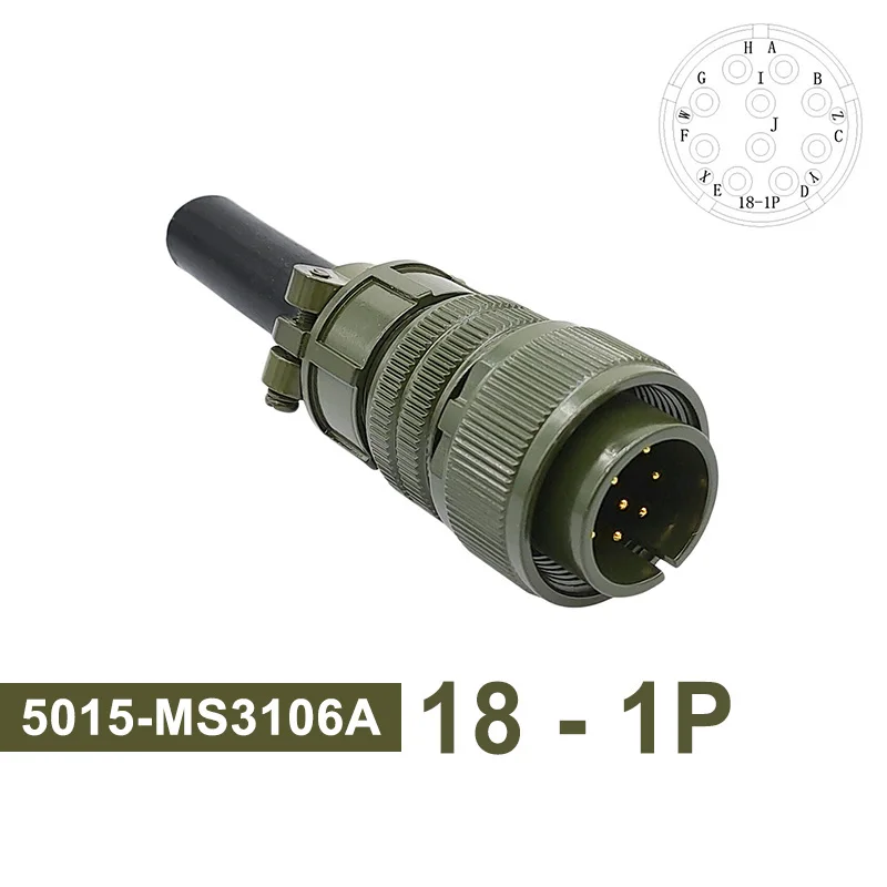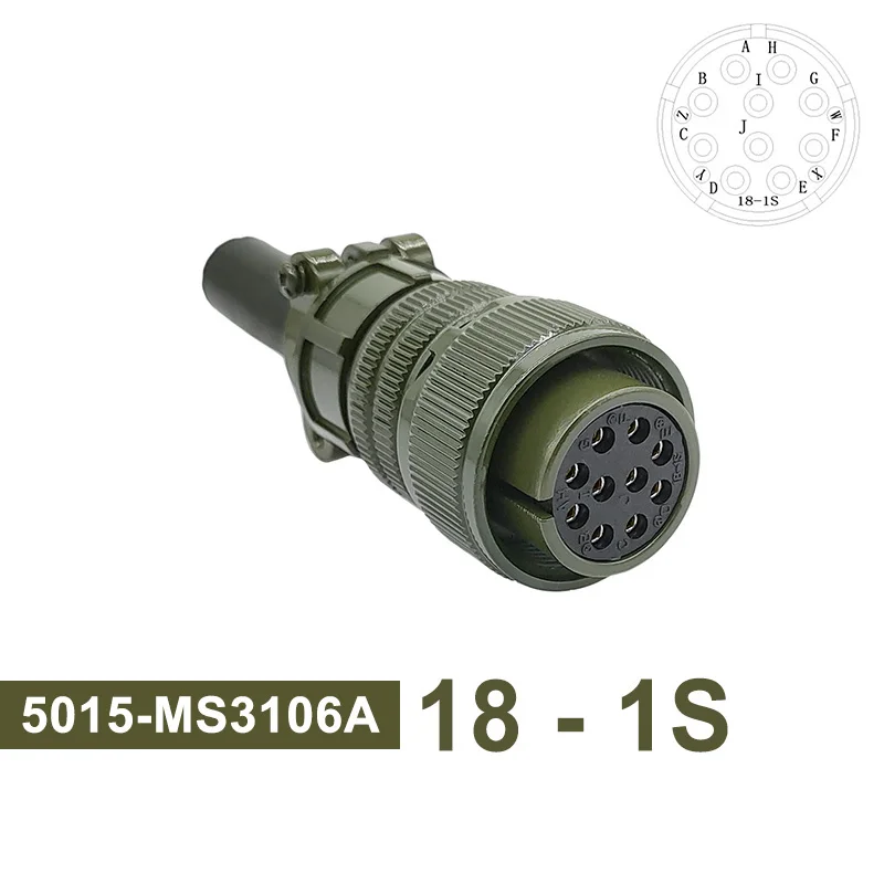 This military-grade circular connector features a rugged design with a matte olive-drab green finish, made for high-reliability applications. Available in models including 18S-12, 18S-8, and 18S-1, it complies with MIL STD specifications such as MS3102, MS3106, and MS3108. The connector includes plug and socket configurations with various pin and socket arrangements, like 18-12P, 18-8S, and 18-1P, and operates at 220V voltage. Its sturdy construction, precise threaded base, and textured knurled rings ensure secure, reliable connections, making it ideal for demanding military, aerospace, or industrial environments.