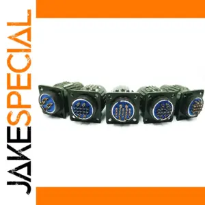 Experience the reliability and durability of this series of military-grade connectors designed for demanding industrial and military applications. Featuring a sleek circular shape with a sturdy black housing, these connectors are finished with a striking blue inner ring that highlights their advanced pin configurations. Each connector is meticulously crafted with high-strength materials, ensuring resistance to corrosion and physical stress. The front face displays precisely arranged metal pins, some gold-plated for superior conductivity and corrosion resistance, in symmetrical circular patterns. The threaded outer shell and mounting holes provide secure attachment, guaranteeing stable electrical connections. Whether used in rugged environments or critical systems, these connectors ensure dependable performance, emphasizing safety, durability, and high-performance standards required by professionals. Trust these connectors to deliver impeccable connectivity where it matters most.