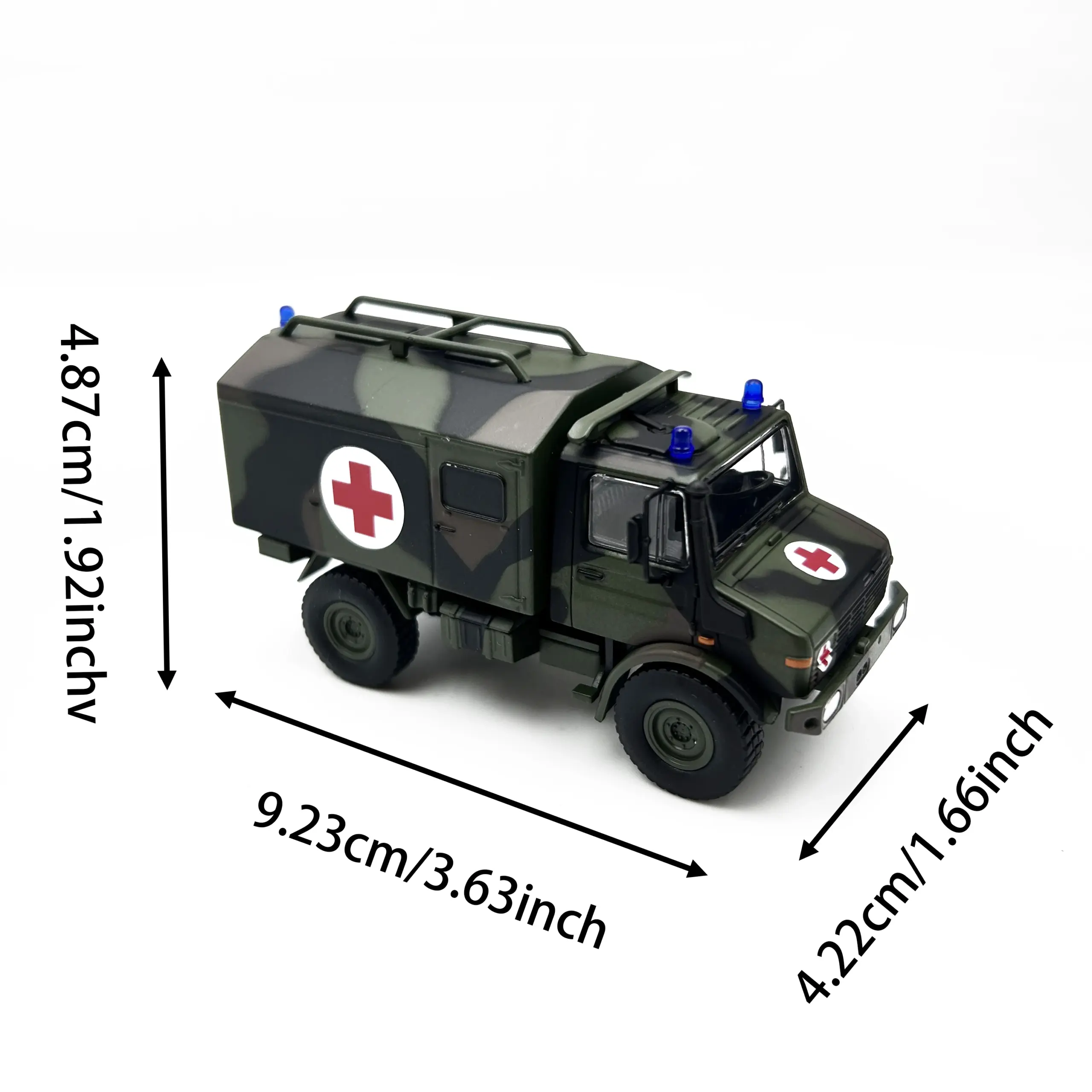 This 1:64 scale mini alloy toy car replicates a military vehicle, featuring a deep military green finish for an authentic look. It is designed with smooth lines and intricate features that capture attention, including a turret, black-tinted windows, and textured armor detailing. Built for durability, this toy car is perfect for both play and display, ideal for enthusiasts and collectors alike. Its compact size ensures easy portability, making it an excellent gift for special occasions like birthdays, Christmas, or Halloween. Providing an immersive play experience while improving creativity, this alloy car brings joy to both young and adult collectors, making it a versatile addition to any collection.