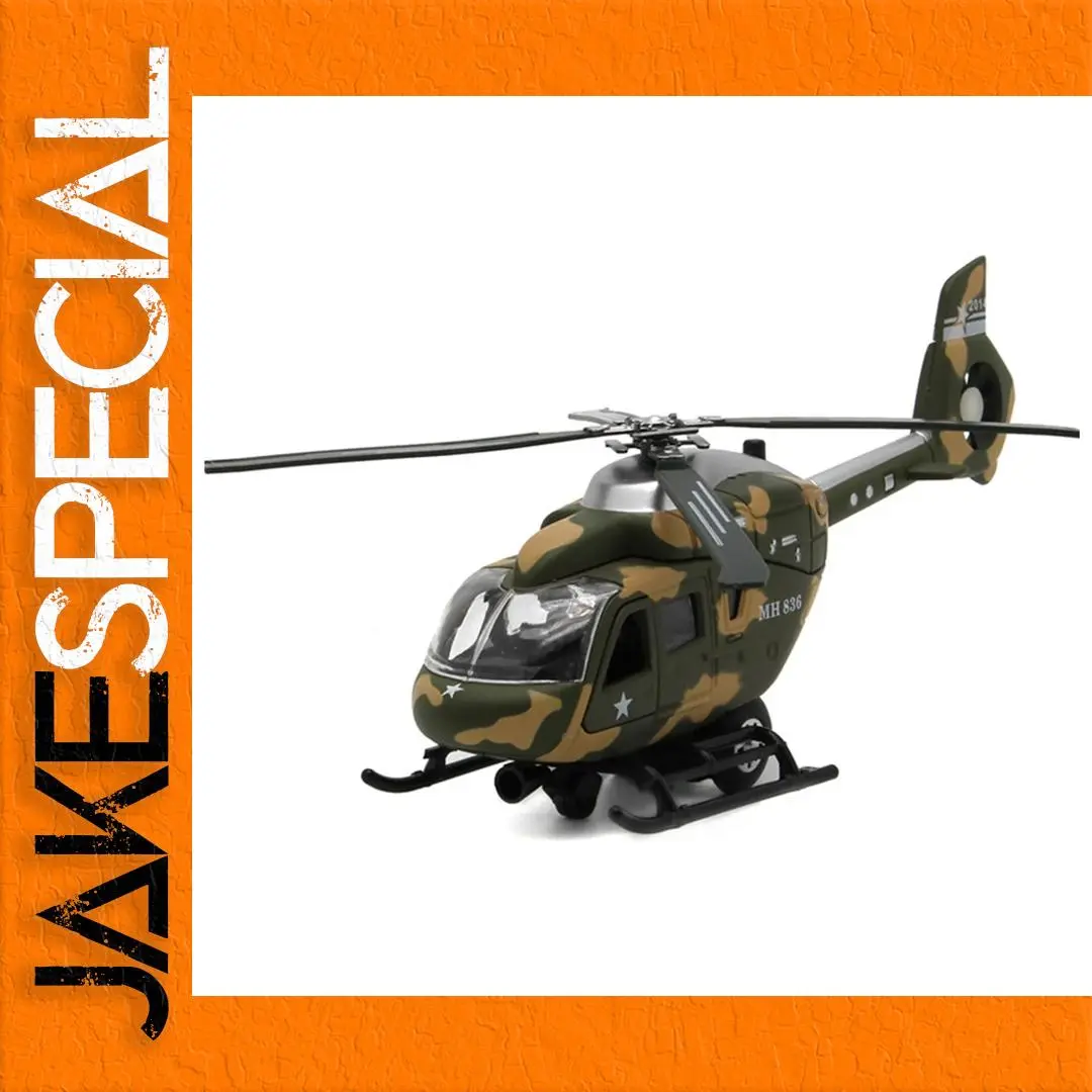 - Constructed from durable diecast metal with a detailed camouflage pattern of dark green, light brown, and black across the fuselage, tail, and rotor blades for a realistic military look.