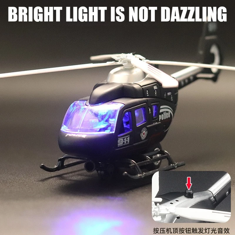 - Equipped with black main rotor blades with white markings and smaller tail rotor blades, faithfully replicating real helicopter design elements.