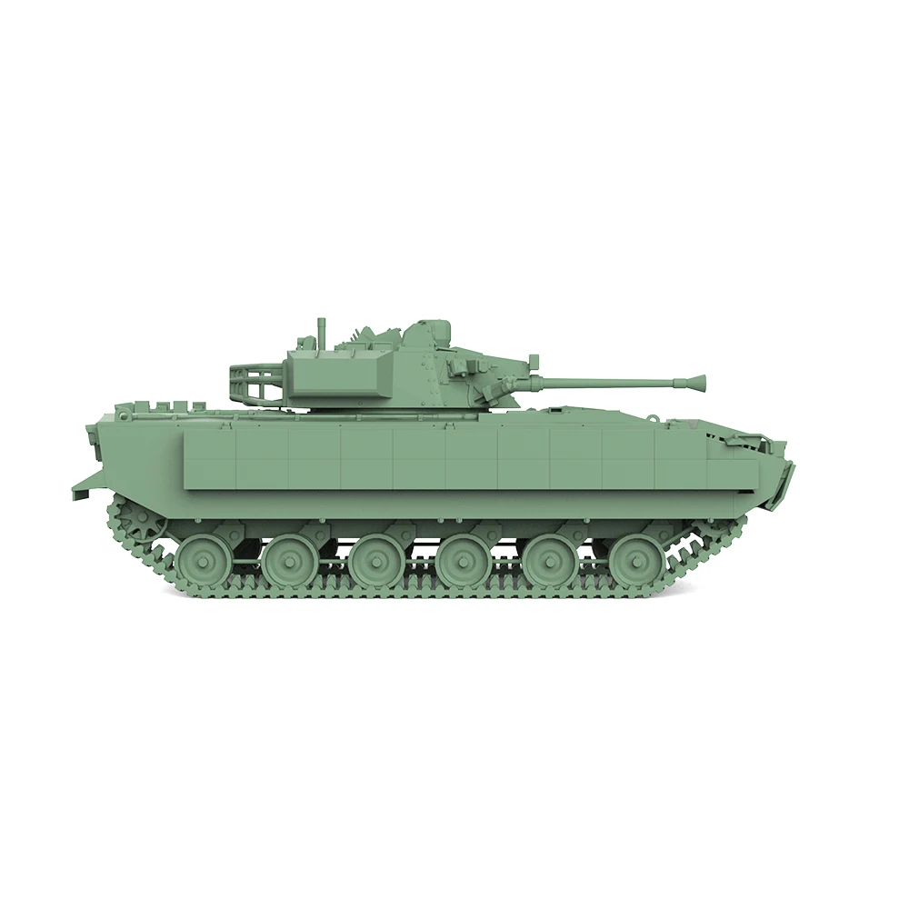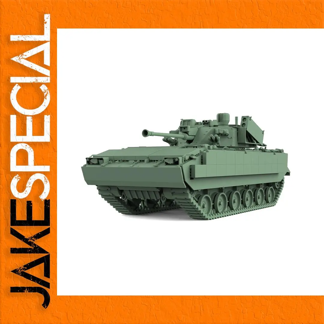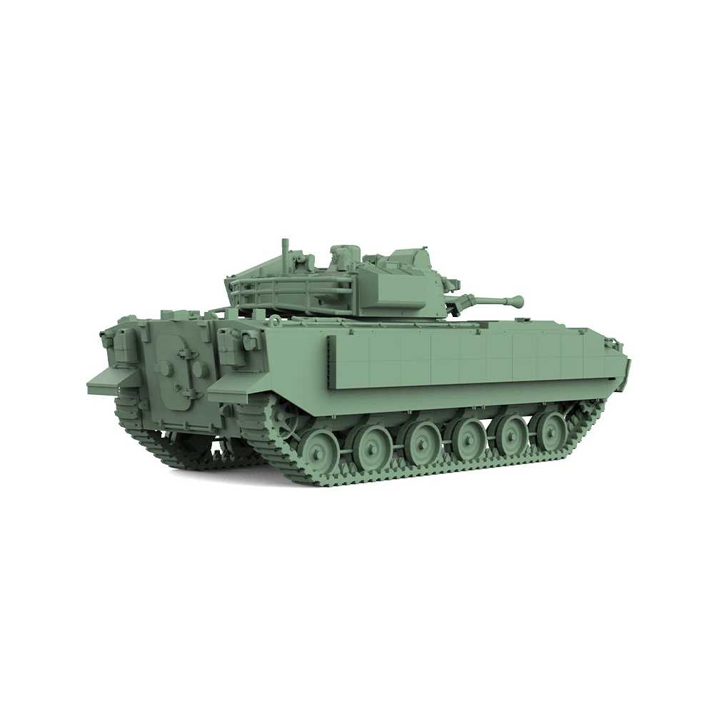The military model kit of armored fighting vehicles offers a stunning representation of tanks in a muted green color, reflecting a classic military aesthetic. Crafted from high-quality resin, this model showcases intricate details from the prominent main gun barrel to the turret, which includes components like a machine gun mount and reinforced plating. Its hull features flat surfaces, modular panel lines, and realistic tracks that enhance the overall design. This model is perfect for static display and appeals to military enthusiasts. Available in multiple scales, including 1/144, 1/200, 1/350, and 1/700, it promises a rewarding assembly experience for those 14 and over.