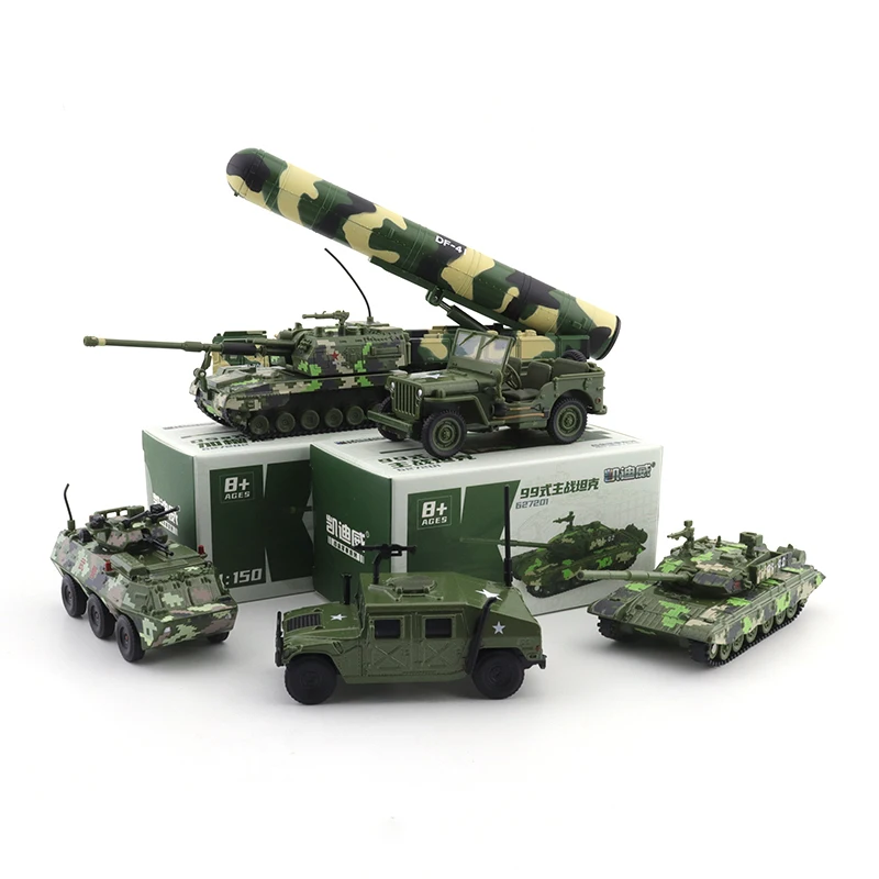 - This set includes a 1:64 scale armored tank, missile launcher, and military vehicles made from high-quality metal, with highly detailed textures and realistic camouflage patterns for authenticity.