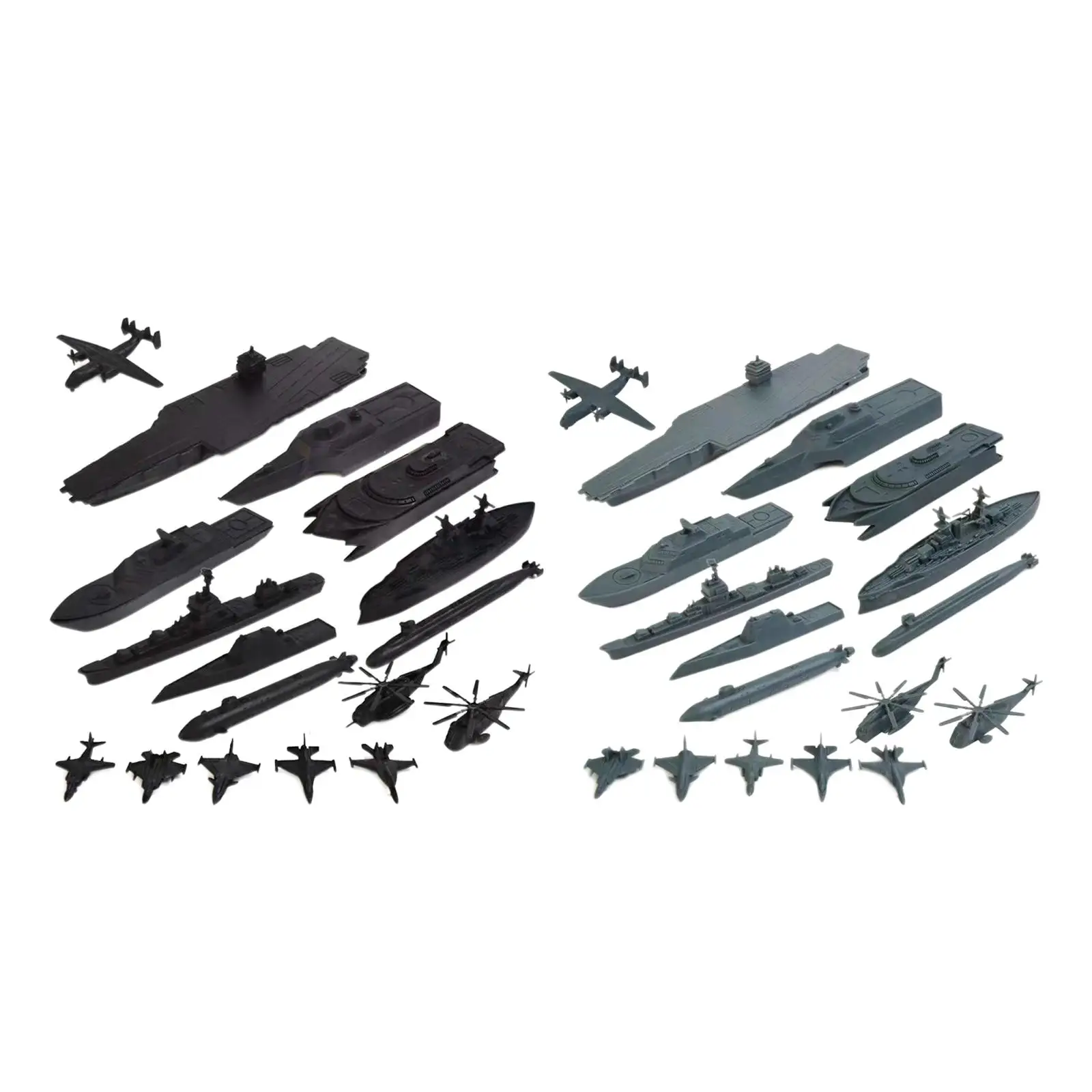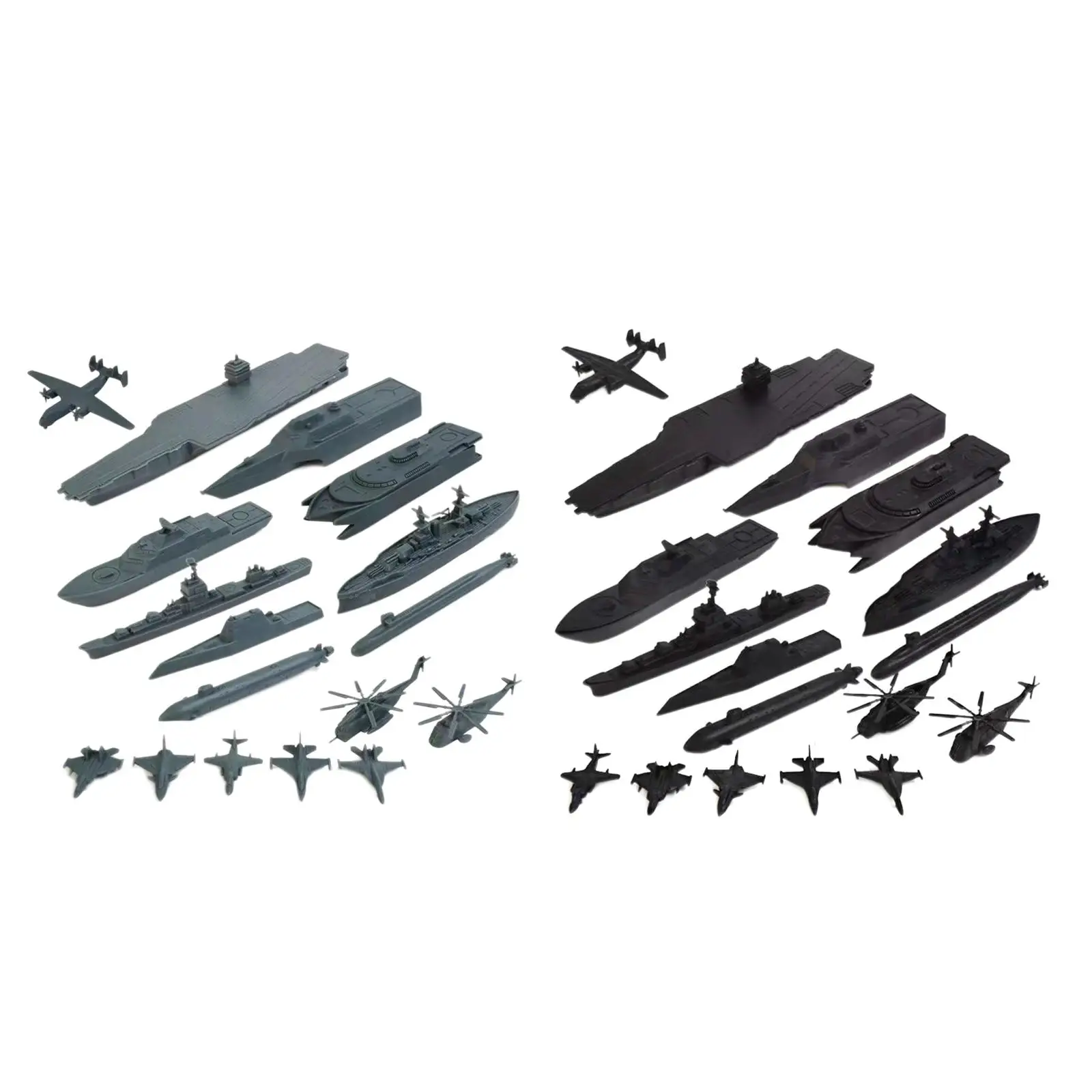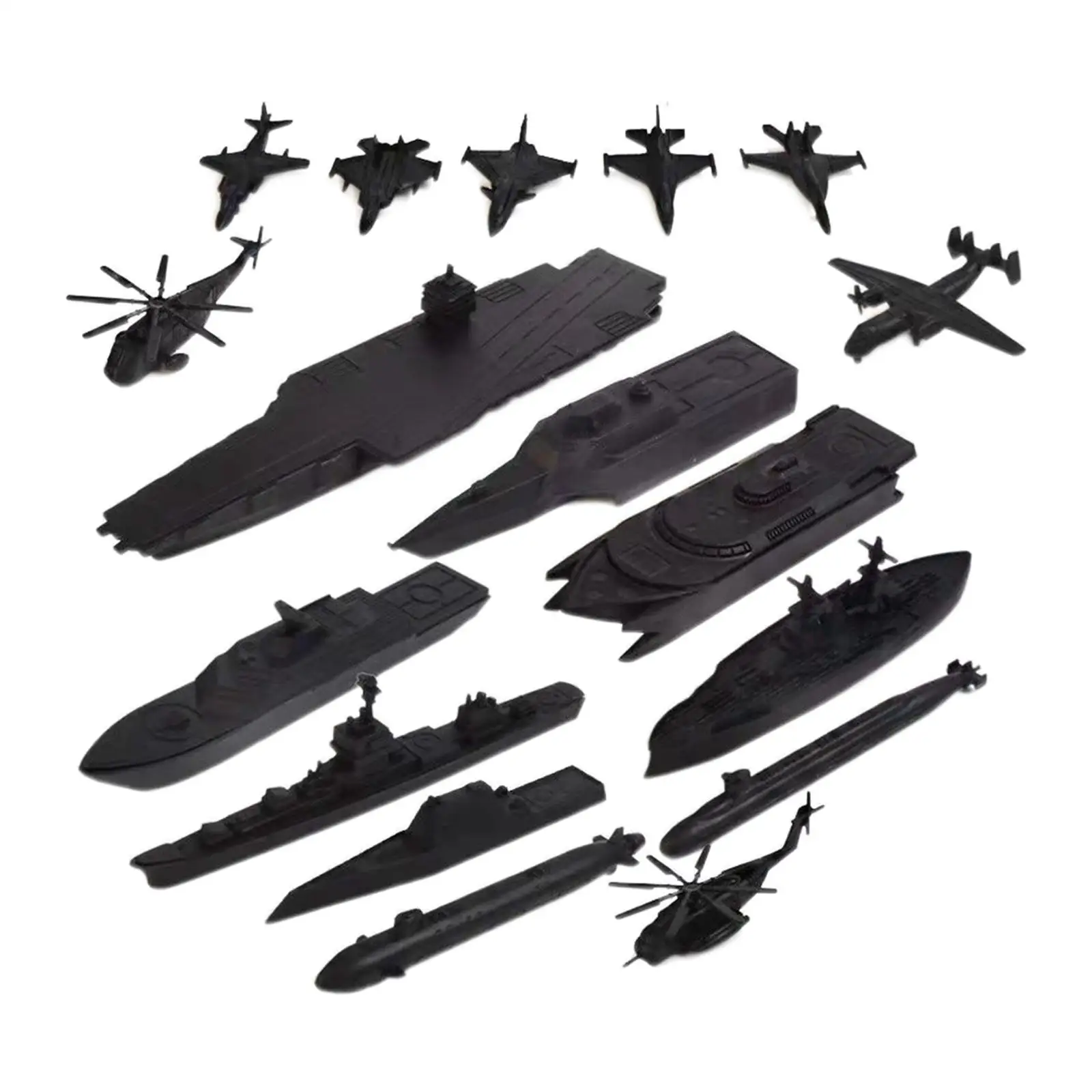 Imagine assembling a formidable fleet of military vessels and aircraft, crafted with precision and modern aesthetics. This 17-piece naval ship set allows you to create an impressive collection featuring a sleek naval ship, two submarines, five fighter jets, a transporter, and two helicopters—all designed with a contemporary, monochrome style in black and gray. Made from durable ABS plastic, each model boasts angular, streamlined shapes with flat surfaces and subtle details that evoke realism and power. Perfect for adult collectors or hobbyists, this set offers both engaging assembly and educational enjoyment. Its sophisticated design and technical details make it not just a toy, but a display-worthy collection representing military strength and agility.