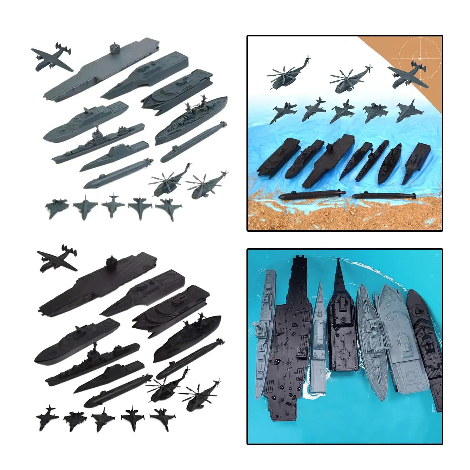 - The set includes a 19 cm (7.48 inch) naval ship, two 14 cm (5.51 inch) submarines, five fighter jets, one transporter, and two helicopters, emphasizing variety and detailed military modeling.