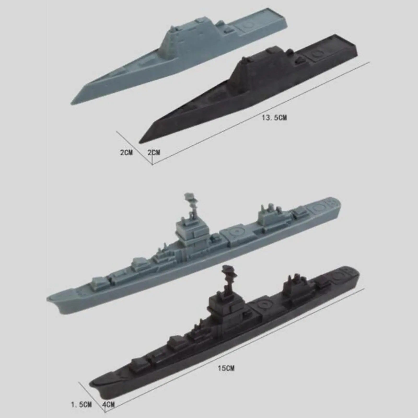 - Technical specifications include models with exact dimensions: naval ship at 19×4.5 cm, submarines at 14×3.5 cm, crafted for durable assembly and display purposes.