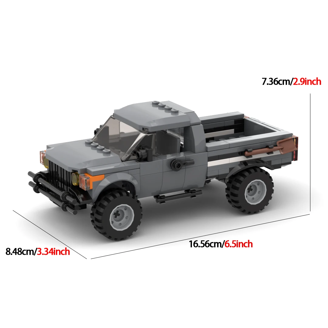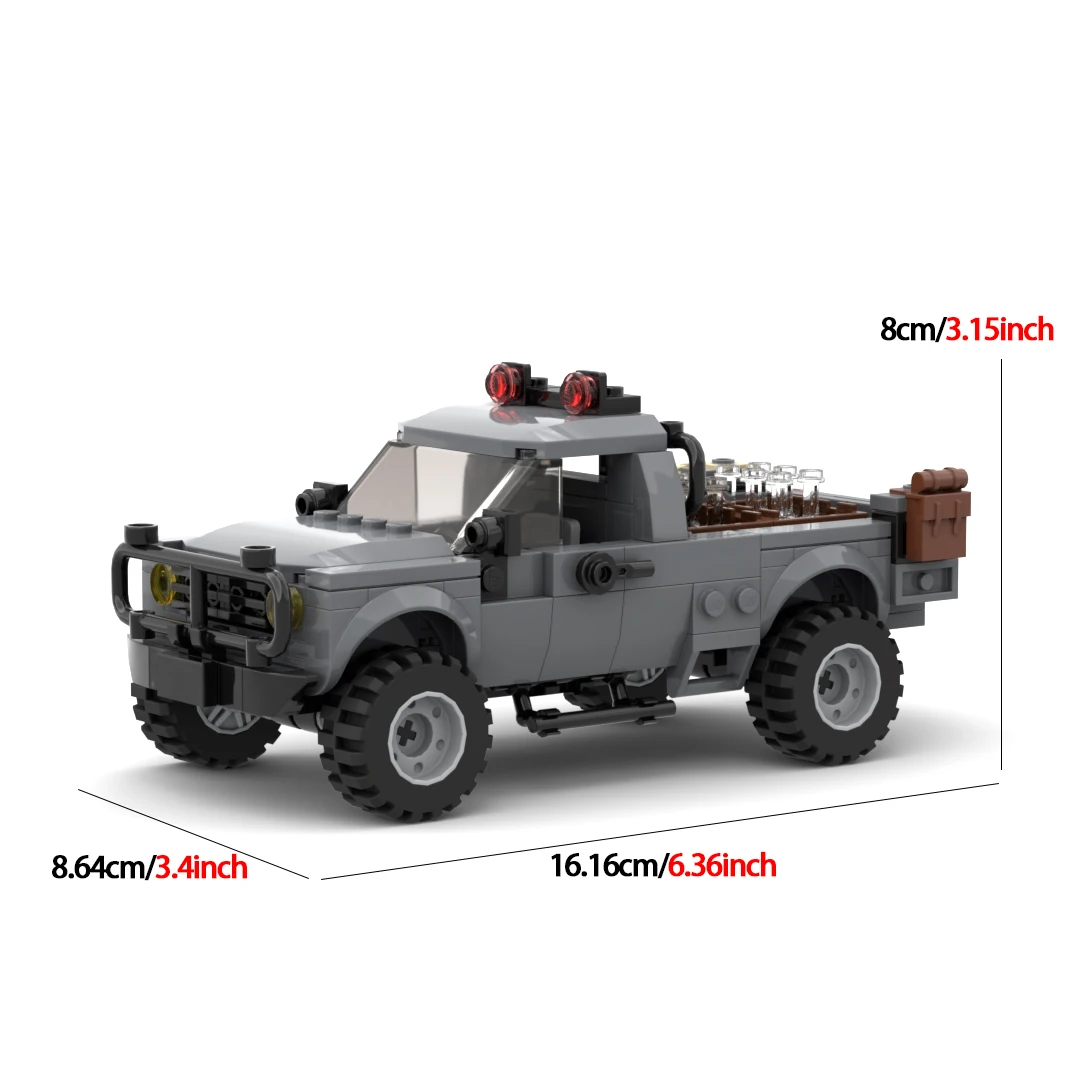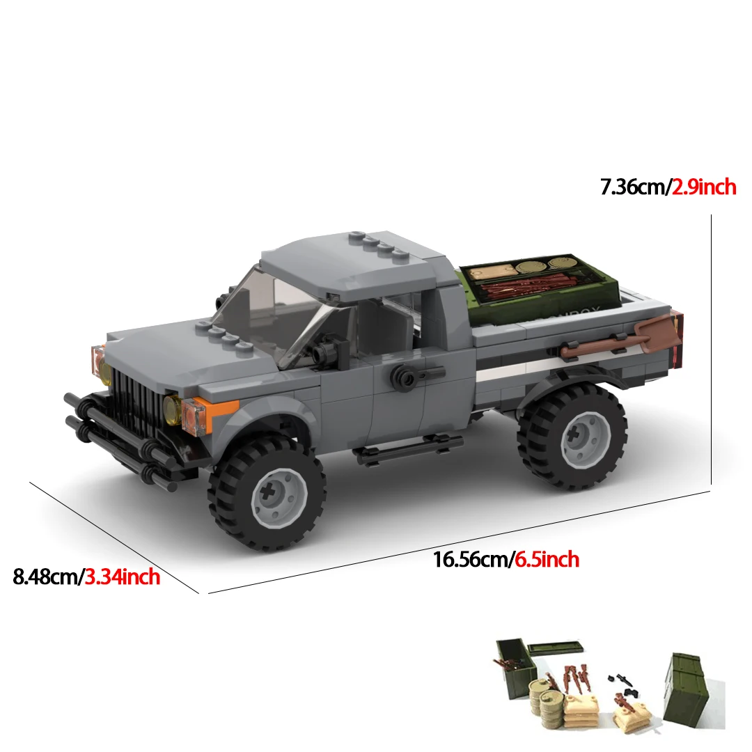 This DIY military-style off-road pickup truck is crafted from durable ABS plastic and designed with a rugged, realistic aesthetic. Measuring approximately [insert dimensions], it features a sturdy boxy shape, large black off-road tires with prominent wheel hubs, transparent windshields and windows, and detailed elements like headlights, grills, and bumpers. The vehicle includes roof accessories such as red lights and structural details, emphasizing its military-inspired theme. Suitable for builders aged 14 and above, and 18+ for educational purposes, the model is compatible with small building blocks, offering an engaging, high-quality construction experience without electrical components or chemical concerns. Available in four different colors (A, B, C, D).