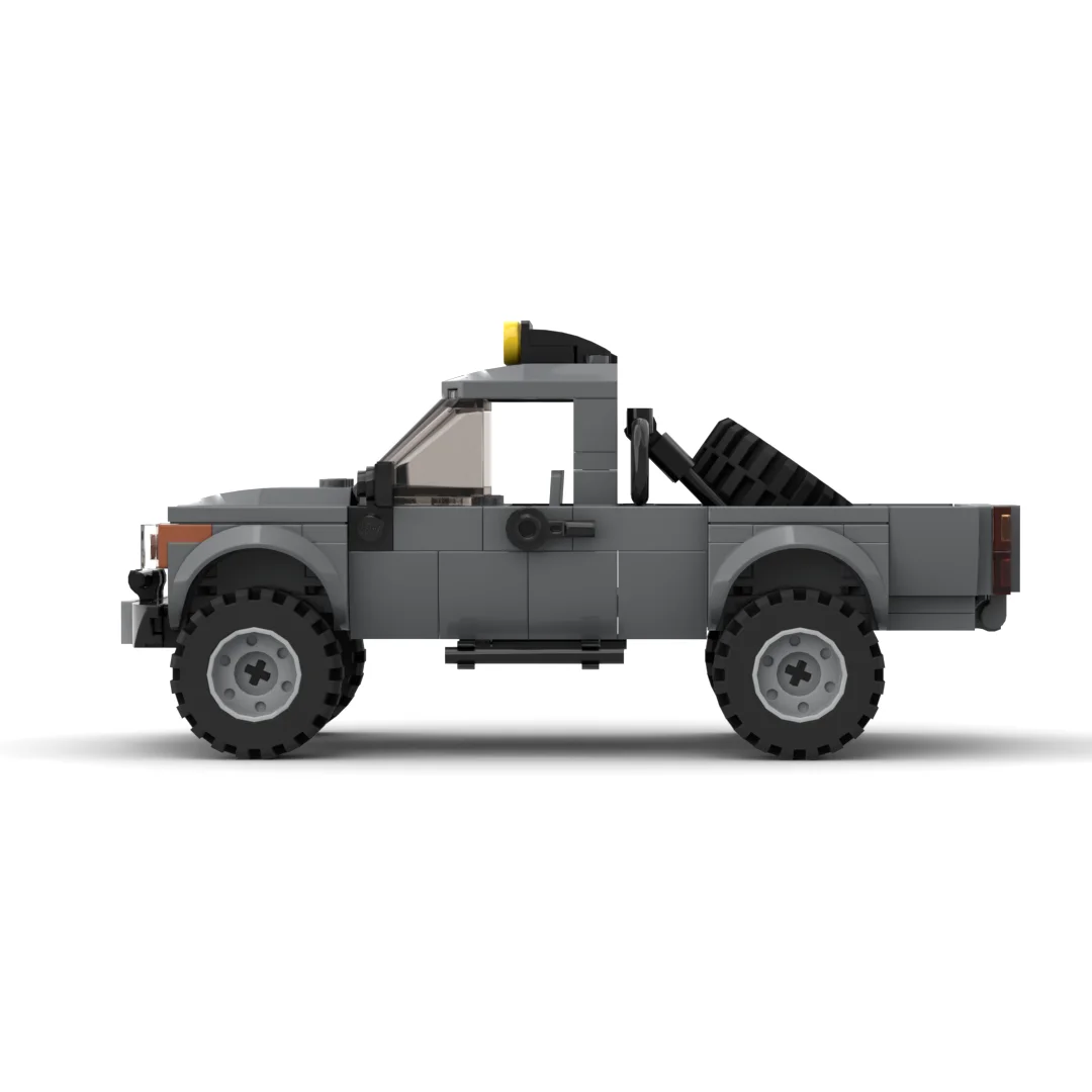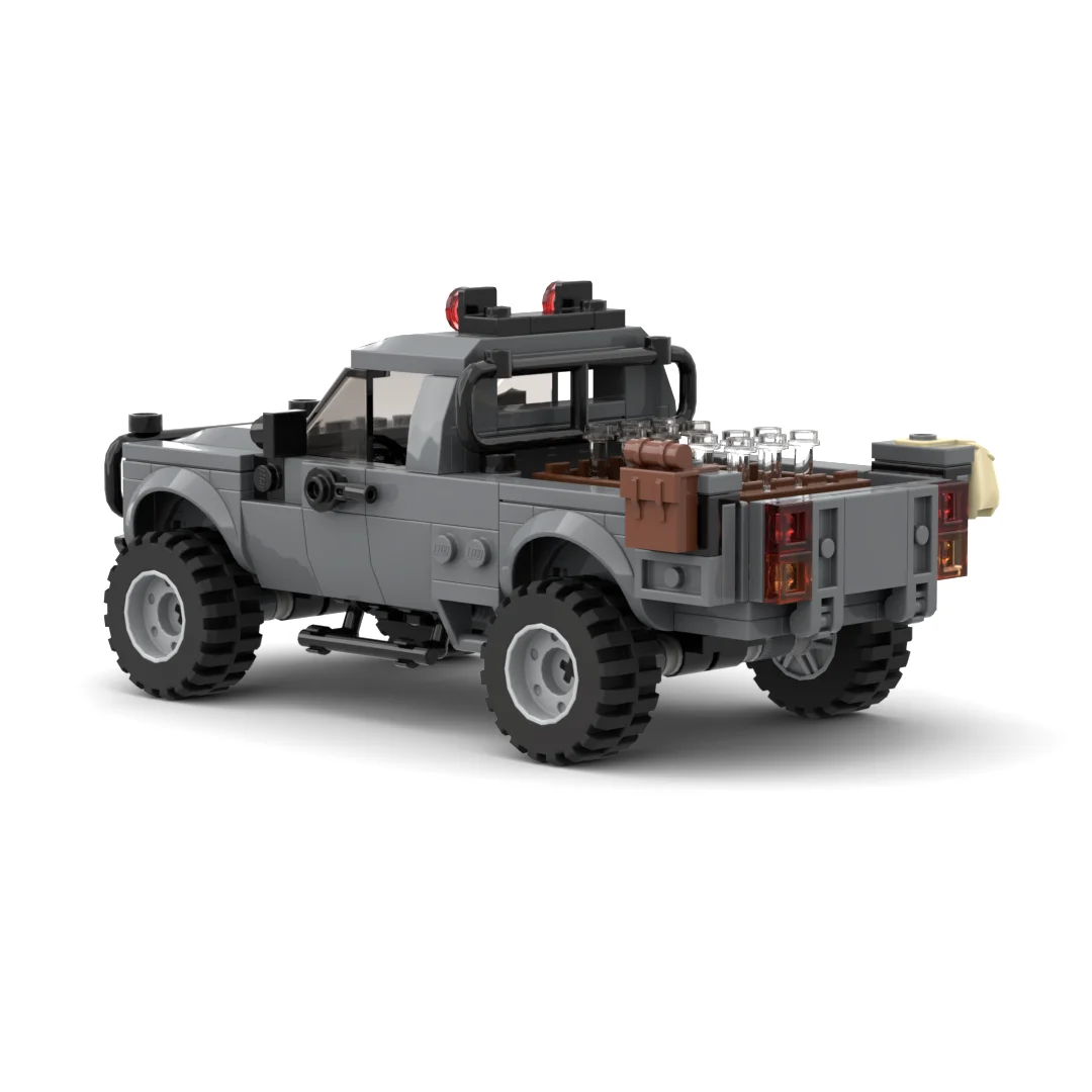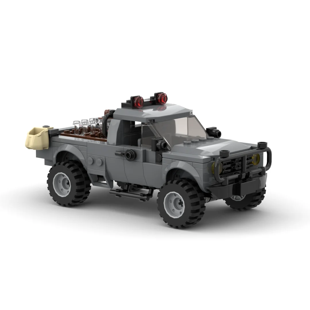 This DIY military-style off-road pickup truck is crafted from durable ABS plastic and designed with a rugged, realistic aesthetic. Measuring approximately [insert dimensions], it features a sturdy boxy shape, large black off-road tires with prominent wheel hubs, transparent windshields and windows, and detailed elements like headlights, grills, and bumpers. The vehicle includes roof accessories such as red lights and structural details, emphasizing its military-inspired theme. Suitable for builders aged 14 and above, and 18+ for educational purposes, the model is compatible with small building blocks, offering an engaging, high-quality construction experience without electrical components or chemical concerns. Available in four different colors (A, B, C, D).