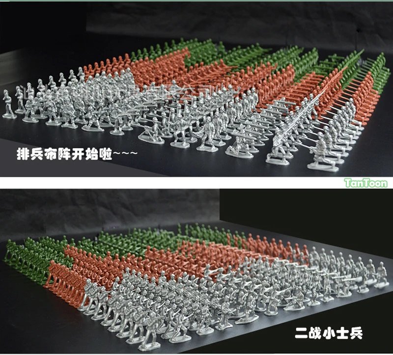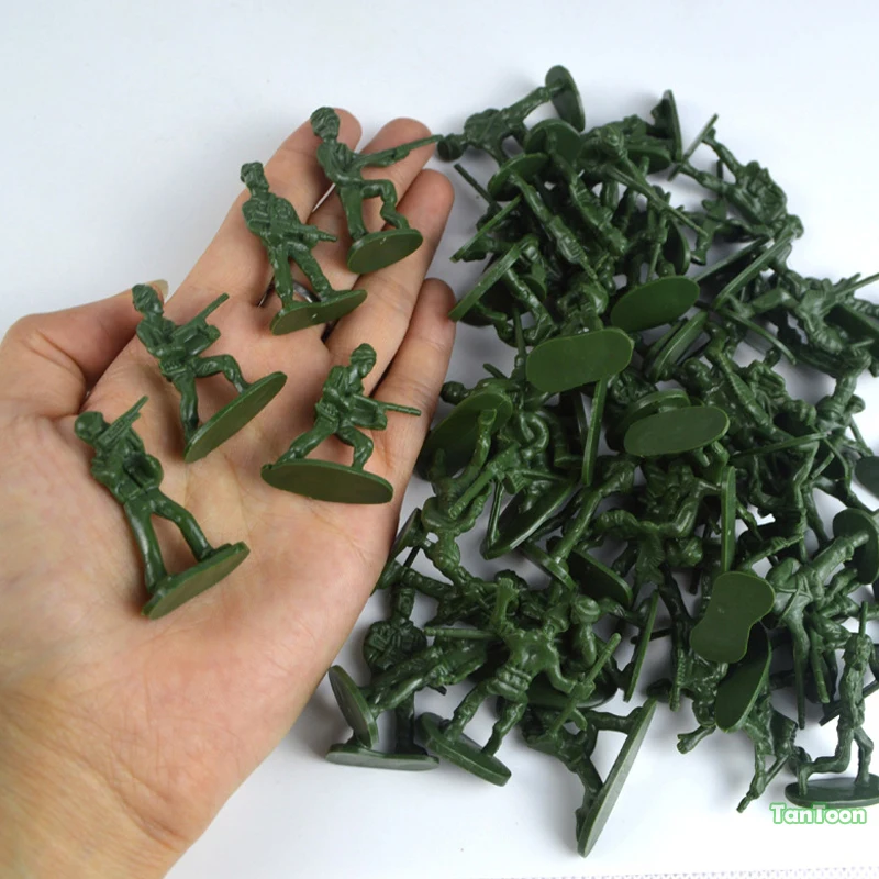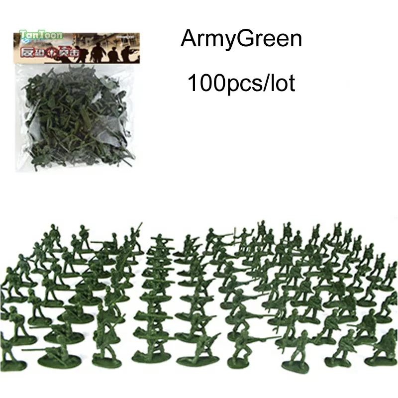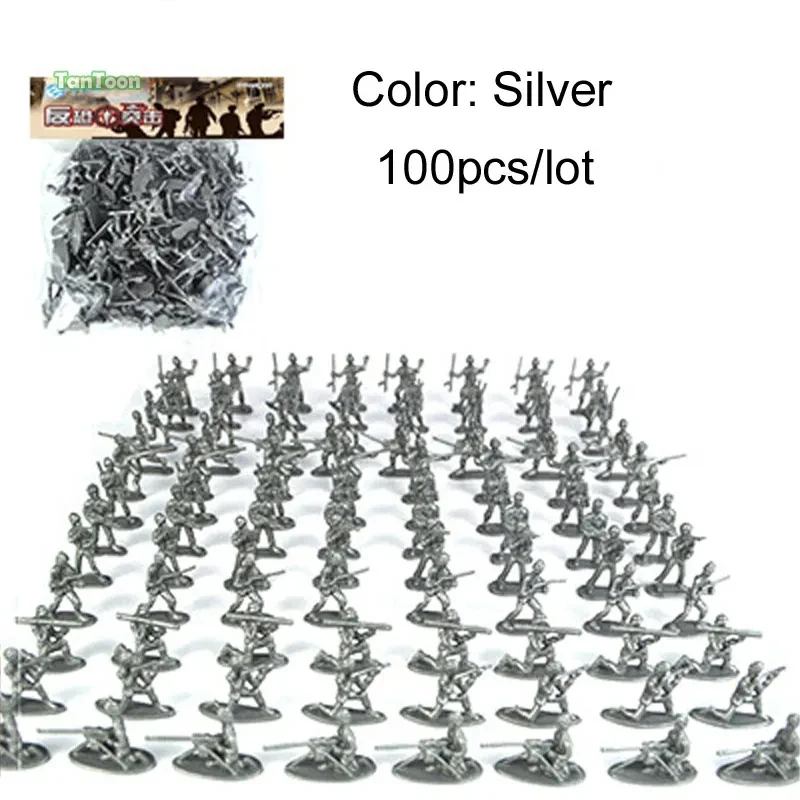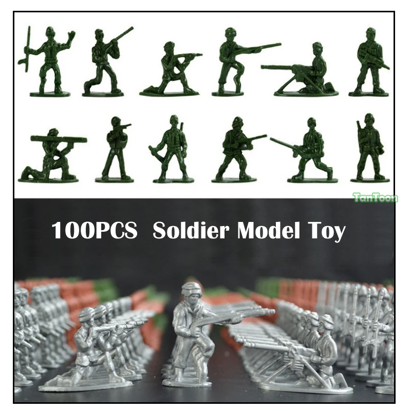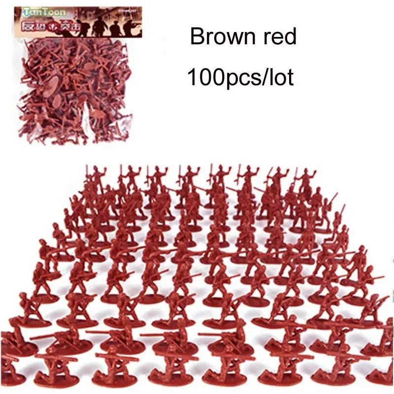 Imagine enhancing your collection or creating immersive dioramas with this lifelike set of 100 plastic soldier figures. Crafted with attention to detail, each figure measures approximately 3.5 centimeters in height and weighs about 3 grams, offering a balanced combination of realism and manageability. The figures feature dynamic poses, armed and equipped with military gear such as helmets, backpacks, and weapons, modeled in a variety of shades in silver, green, and brown red, adding visual diversity. Made from durable plastic, these finished figures are designed for versatility and longevity. Perfect for adult collectors, strategic game scenarios, or themed displays, this set provides endless creative possibilities and a sense of realism that will bring any battlefield scene to life.