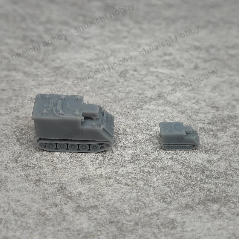 Step into the world of military modeling with this set of five finely crafted resin M577A1 armored command vehicle models. Designed for enthusiasts and DIY hobbyists, these models bring realism and precision to your collection or project. With two scale options—1/700 at approximately 0.72 cm in length and 1/350 at around 1.44 cm—they offer versatility for different display or dioramas. The models showcase intricate surface details, including hatches, panels, and surface textures, all captured through high-quality resin 3D printing. Their monochrome, smooth matte finish emphasizes every technical detail, allowing you to customize or paint them to suit your style. These miniatures not only serve as impressive pieces but also as excellent bases for further customization.